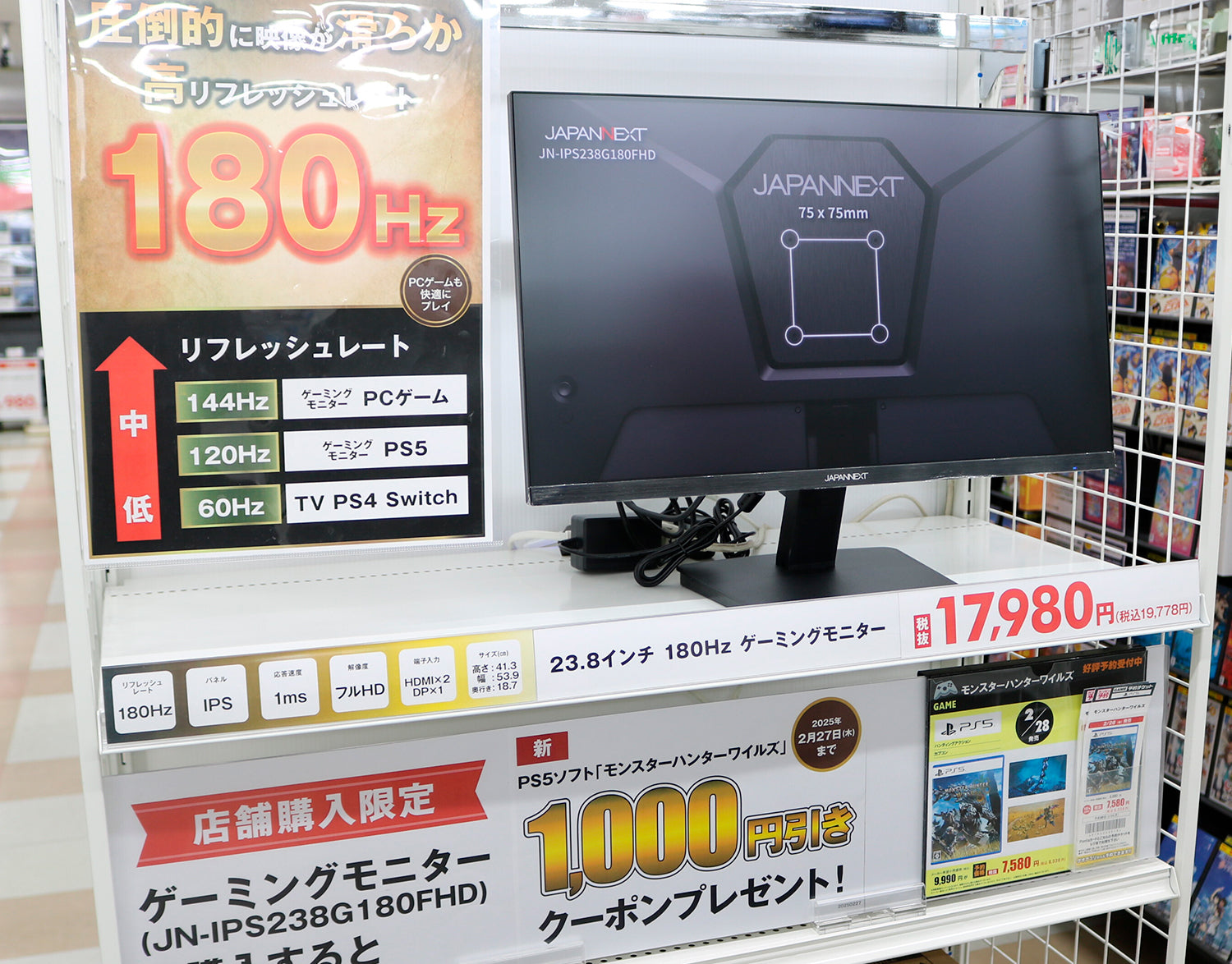 以前から弊社ではゲーミングモニターを販売していました。JAPANNEXTさんの製品導入前は同じくらいのSpecの製品を税込25,000円くらいで販売していました。弊社の客層やお客様のゲームプレイの環境の変化などを考え、性能の良いゲーミングモニターを20,000円以下で販売できないかと思いまして、2024年の春頃に検討を始めました。