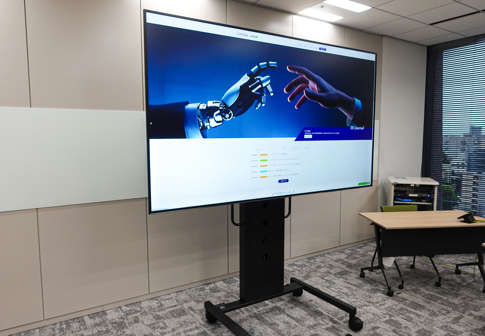 98インチを使用したセミナールームも好評で、特に2面が全て窓になっており外光が大きく取れる分プロジェクターなどと違い、見やすさが格段にあがりました。また、ほかの拠点から来た社員も環境設備に驚いてくれます。