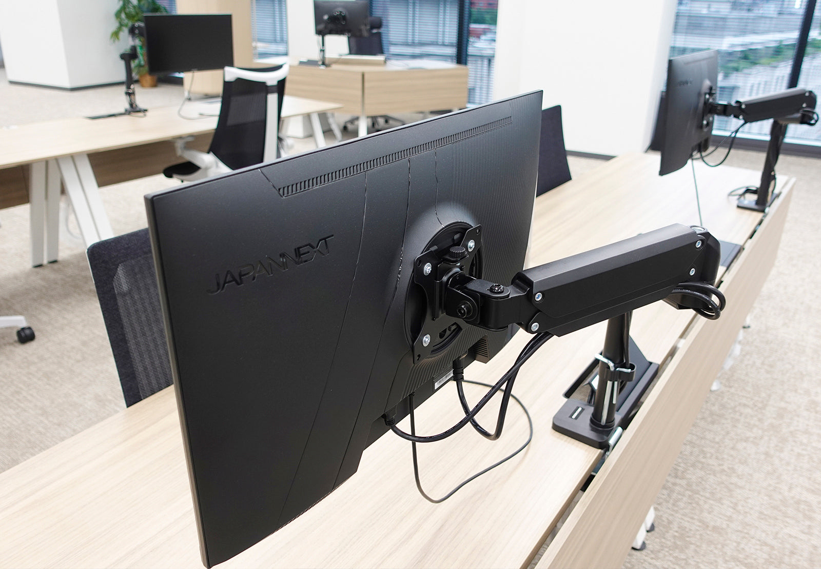 フリーアドレスで使用するUSB-C給電のモニターもJAPANNEXT様は種類が豊富で、相談しながら最適な製品を決めることが出来ました。実は弊社の担当者とJAPANNEXT様のご担当者様が旧知だったことがわかり、さらに相談しやすくなり安心して選定できました。