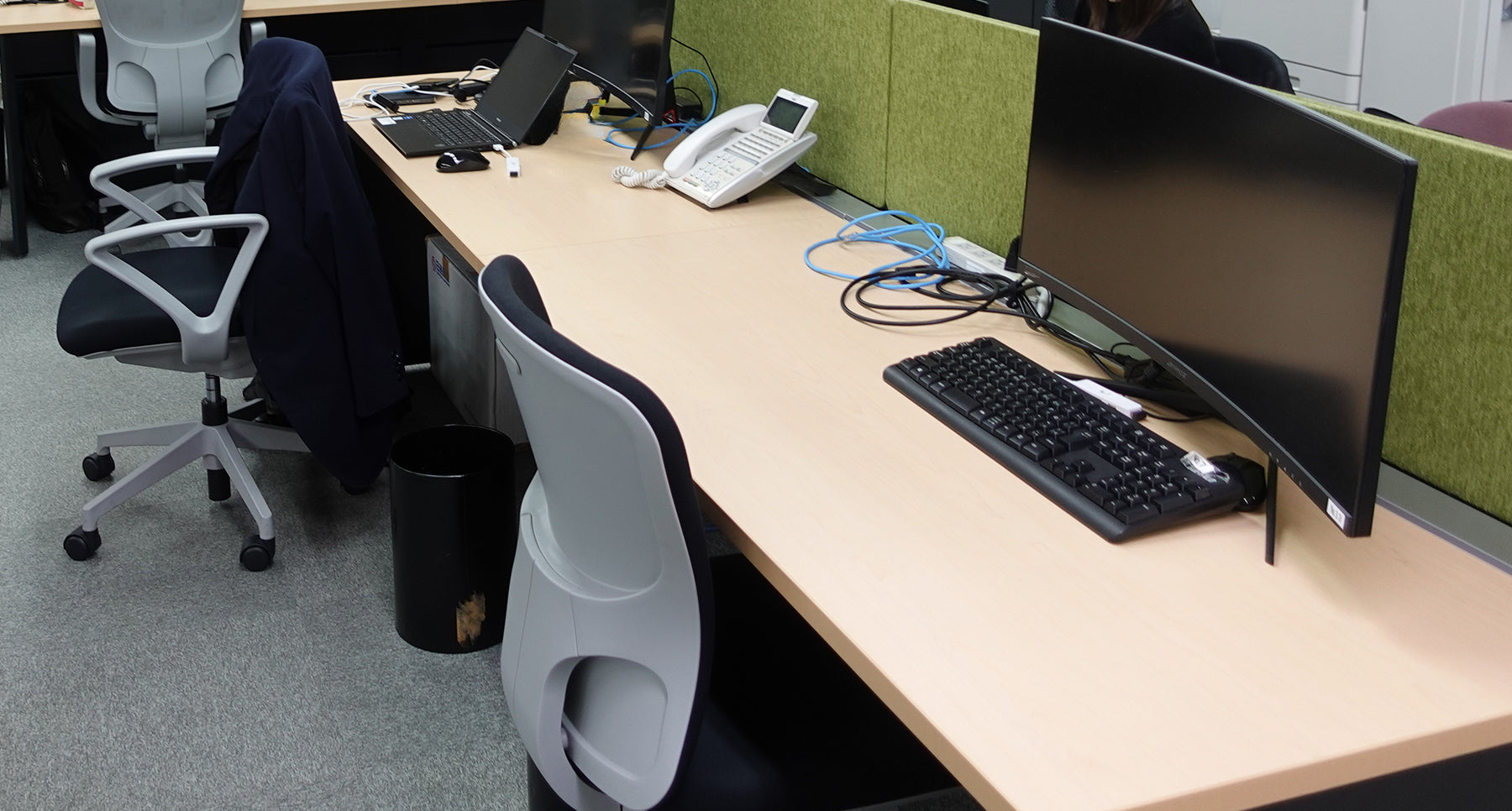 当初、本社のフリーアドレスに導入したのですが、支店の社員が出張で来た際に湾曲のウルトラワイドモニターを使用し、