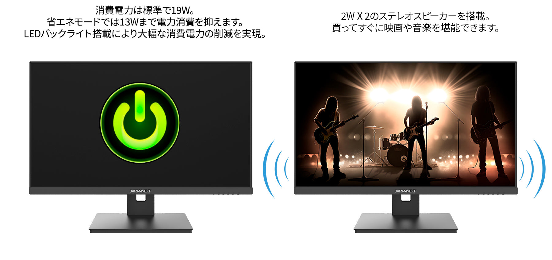 ブルーライト軽減モードを搭載し、フリッカーフリー設計で、目と身体への負担を軽減します。100mmx100mmのVESAマウントに対応、別売のモニターアームやモニタースタンドへの取り付けが可能です。また2W x2のスピーカーを内蔵します。