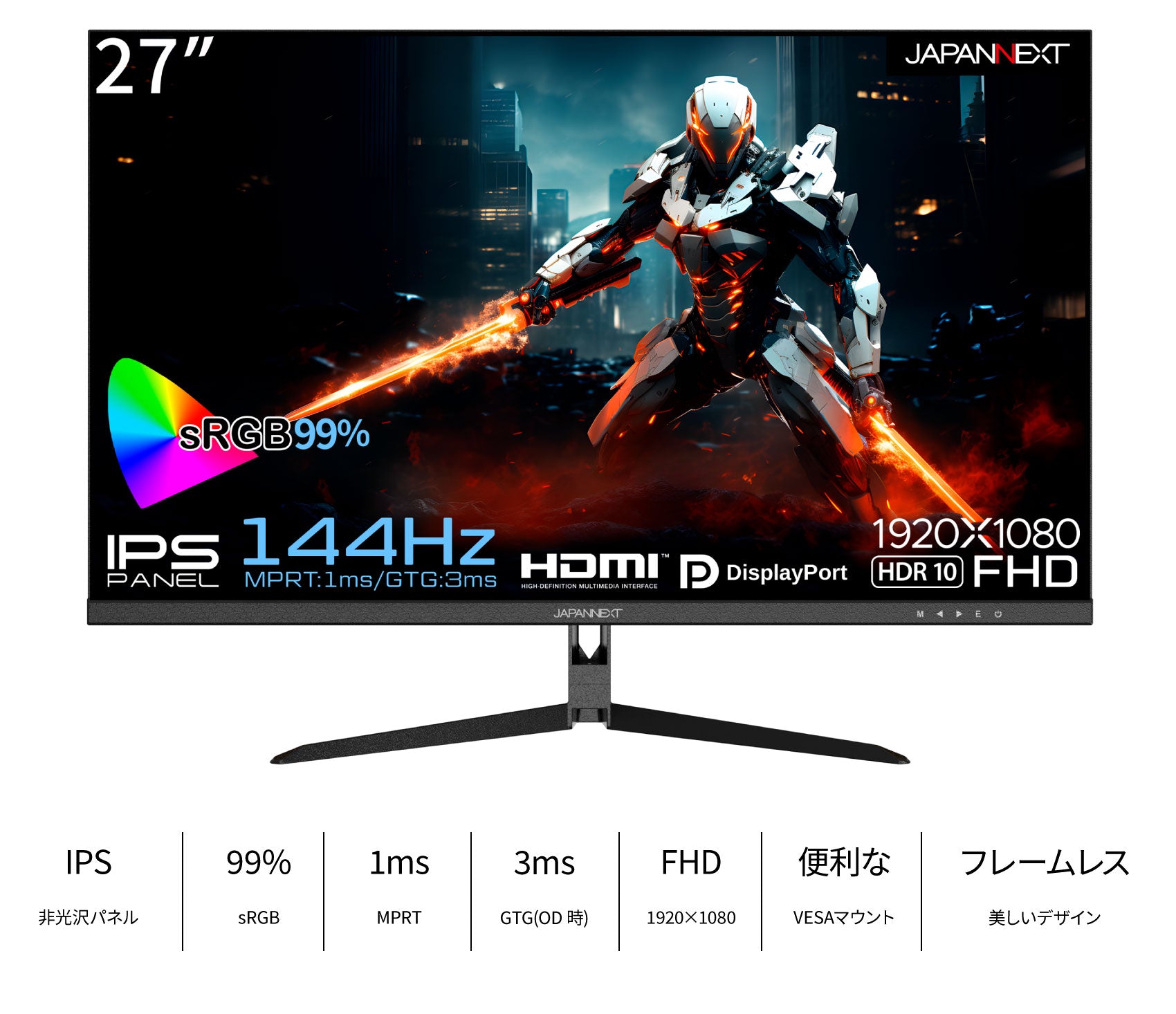 27" IPSパネル144Hz対応 FHDゲーミングモニター