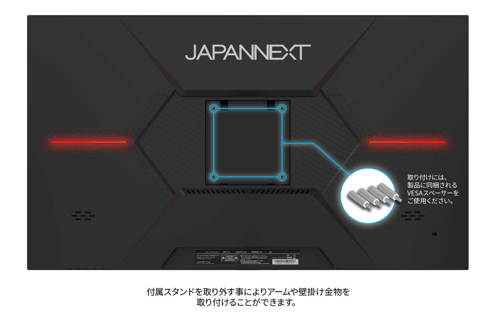 付属スタンドを取り外す事によりアームや壁掛け金物を取り付けることができます。
