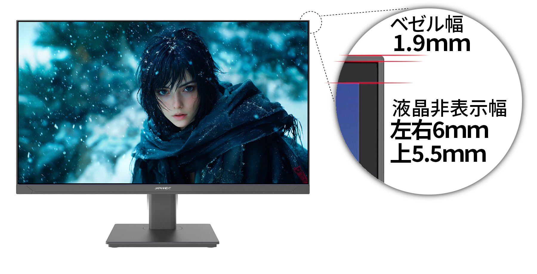 インテリアに馴染みやすい狭額フレームを採用。設置する場所に困らない省スペース設計となっています