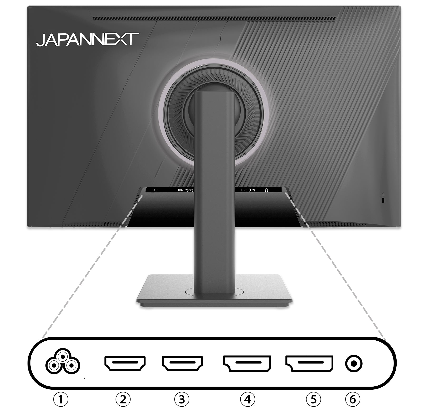 映像入力端子は、DisplayPort1.2 x2 (WQHD:180Hz対応)、HDMI2.0 x2 (WQHD:144Hz対応)を搭載し、PCやコンソールゲーム機など様々な機器と接続が可能です。