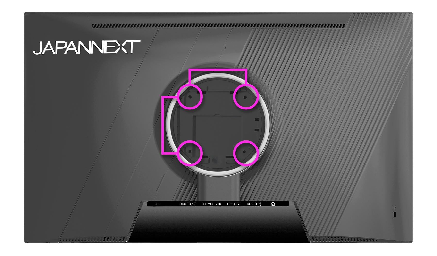 75x75mmのVESAマウントに対応、モニターアームやモニタースタンドなどへの取り付けが可能です。
