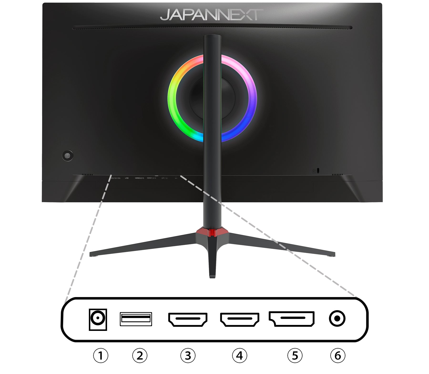 映像入力端子はDisplayPort1.2 x1(165Hz対応)、HDMI2.0 x2(144Hz対応) を搭載しPCやコンソールゲーム機など様々な機器と接続が可能です。