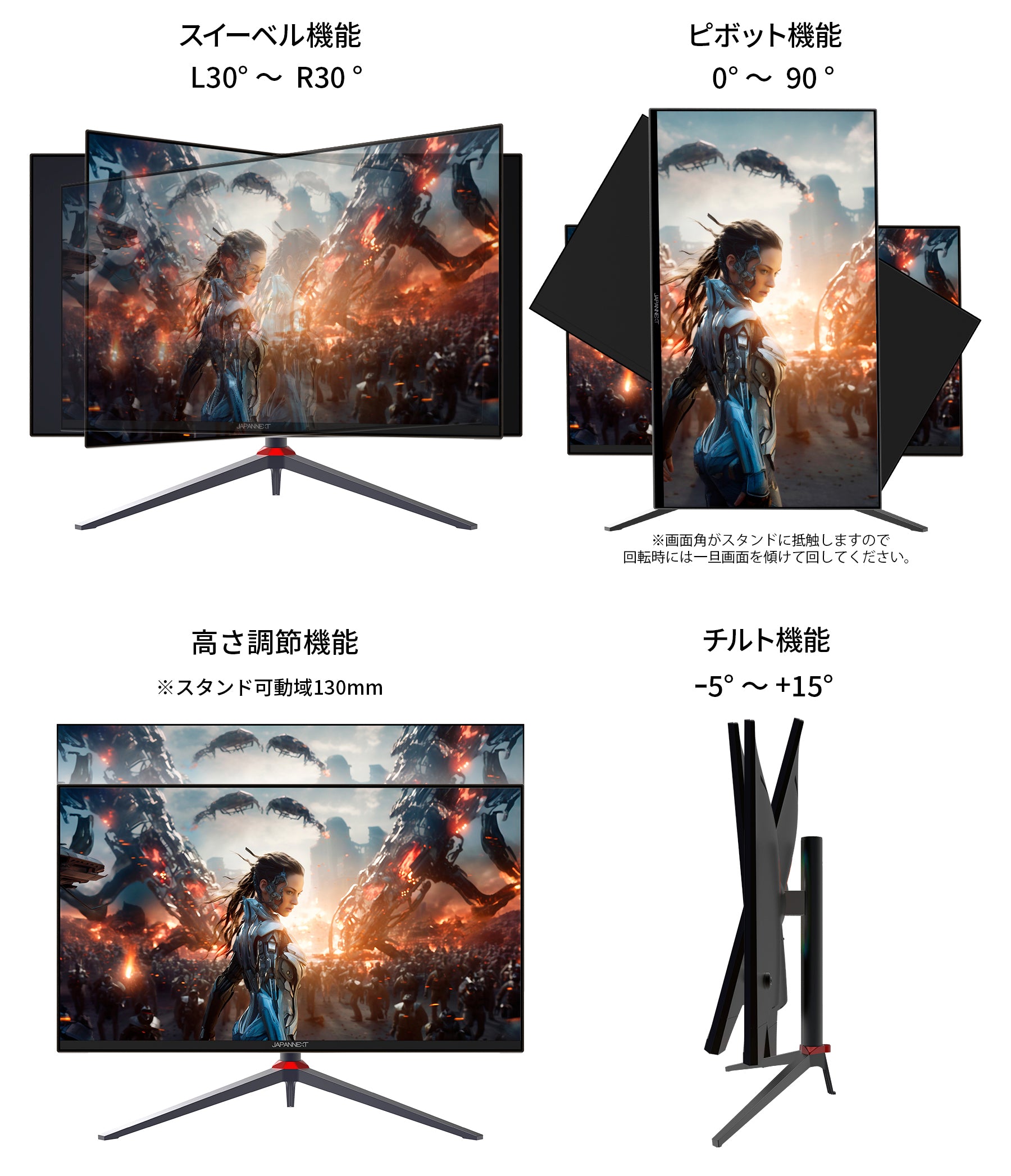 高速リフレッシュレート 広大な解像度 多機能スタンド