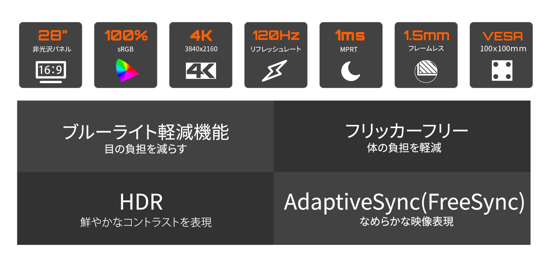 28” IPSパネル 120Hz対応 4Kゲーミングモニター