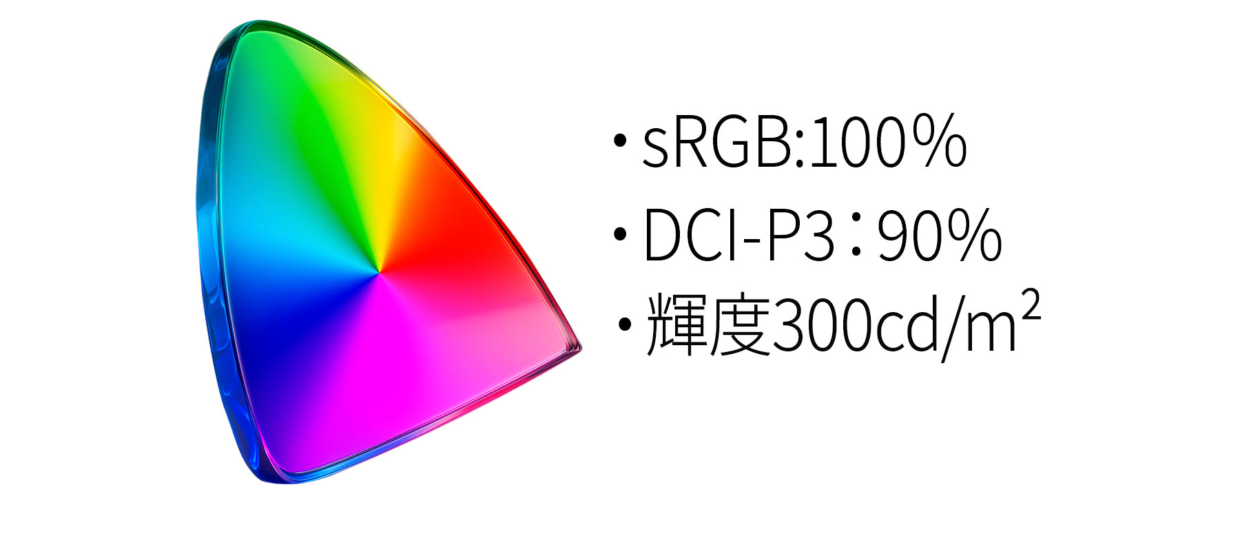 sRGB : 100%、DCI-P3: 90%、輝度 : 300cd/m²の高性能パネルが、鮮やかで精緻な色彩表現を実現します。