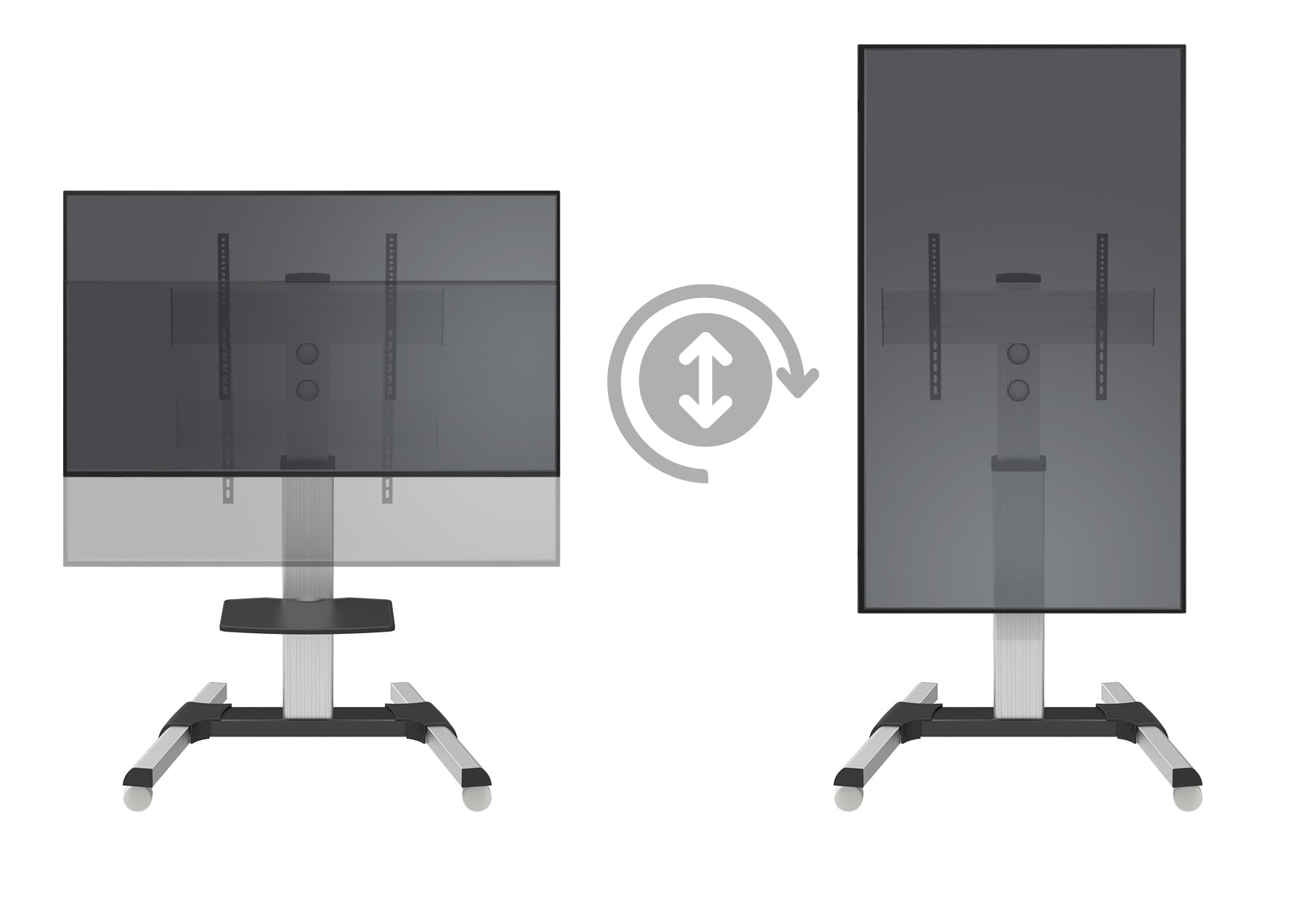 大型テレビも設置可能なテレビスタンド、32~75型テレビに対応。高さ調整、90度回転機能、キャスター付き。