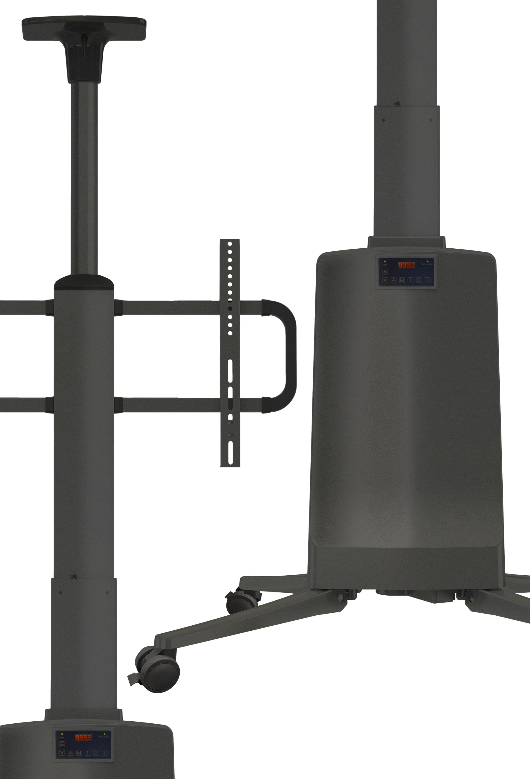 大型で*重量のあるモニターでも、キャスターで簡単移動。さらに電動式で楽に**高さを変えられます。