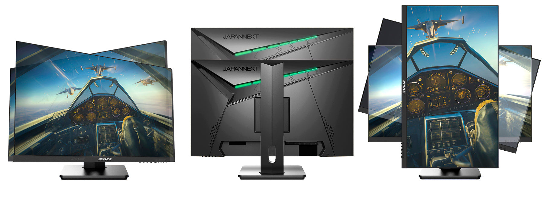 便利な昇降式多機能スタンドを採用。130mmの範囲内で高さ調整を行うことが可能です。また90度右に回転させての縦使用も可能です。