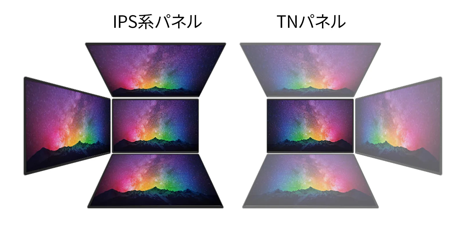 上下左右178°の視野角度を持つIPSパネルは標準的なTNパネルと異なり、
