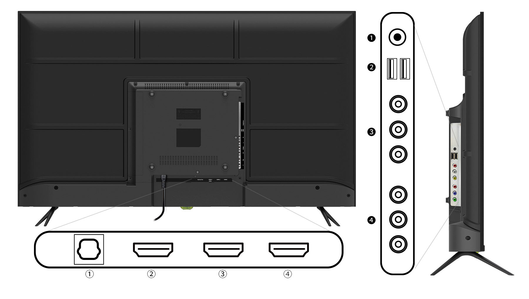 ❷USB-A1、A2 : 2.0 (USBメディアプレイ、ファームウェア更新)