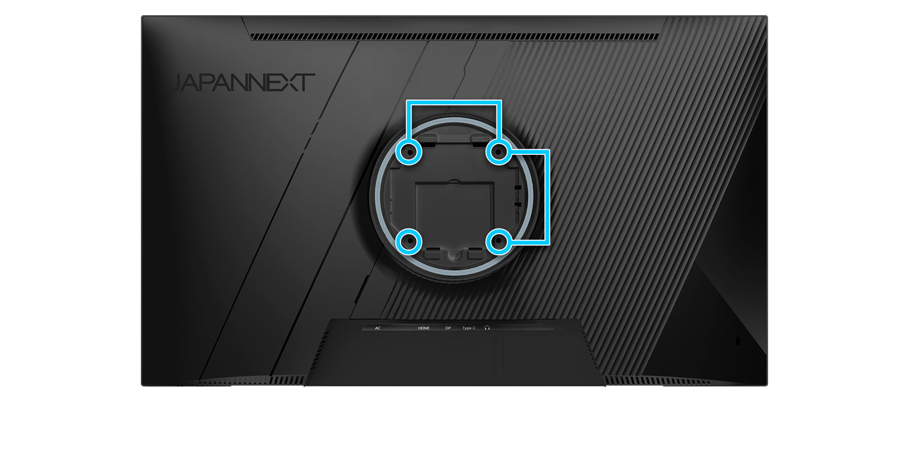 75x75mmのVESAマウントに対応、別売のモニターアームやモニタースタンドなどへの取り付けが可能です。
