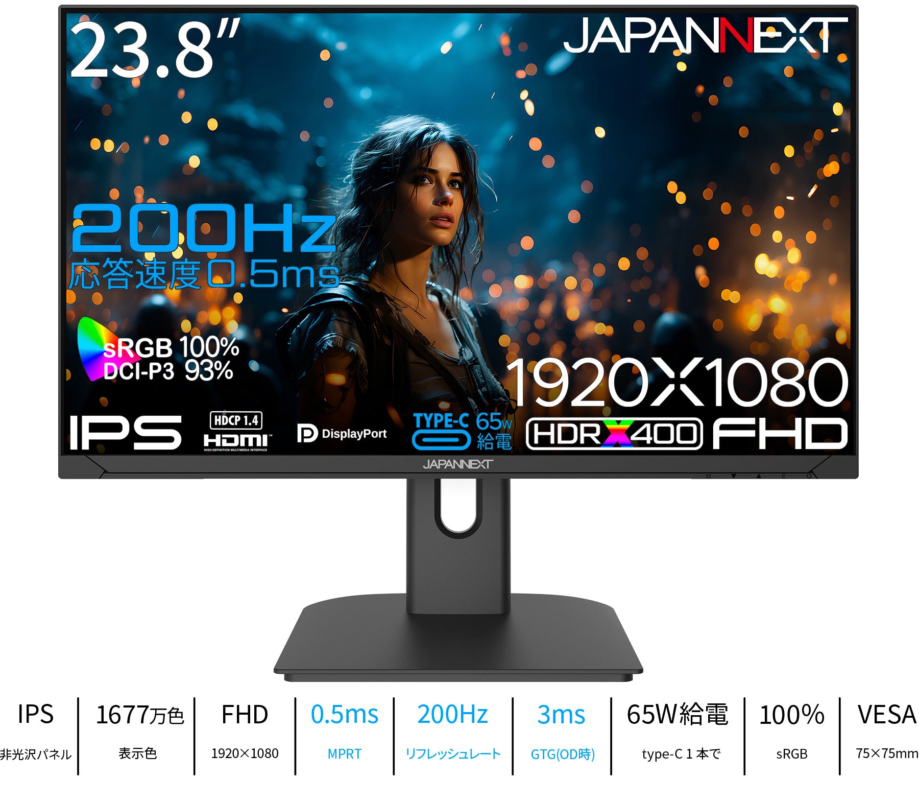23.8” IPSパネル搭載 FHDゲーミングモニター