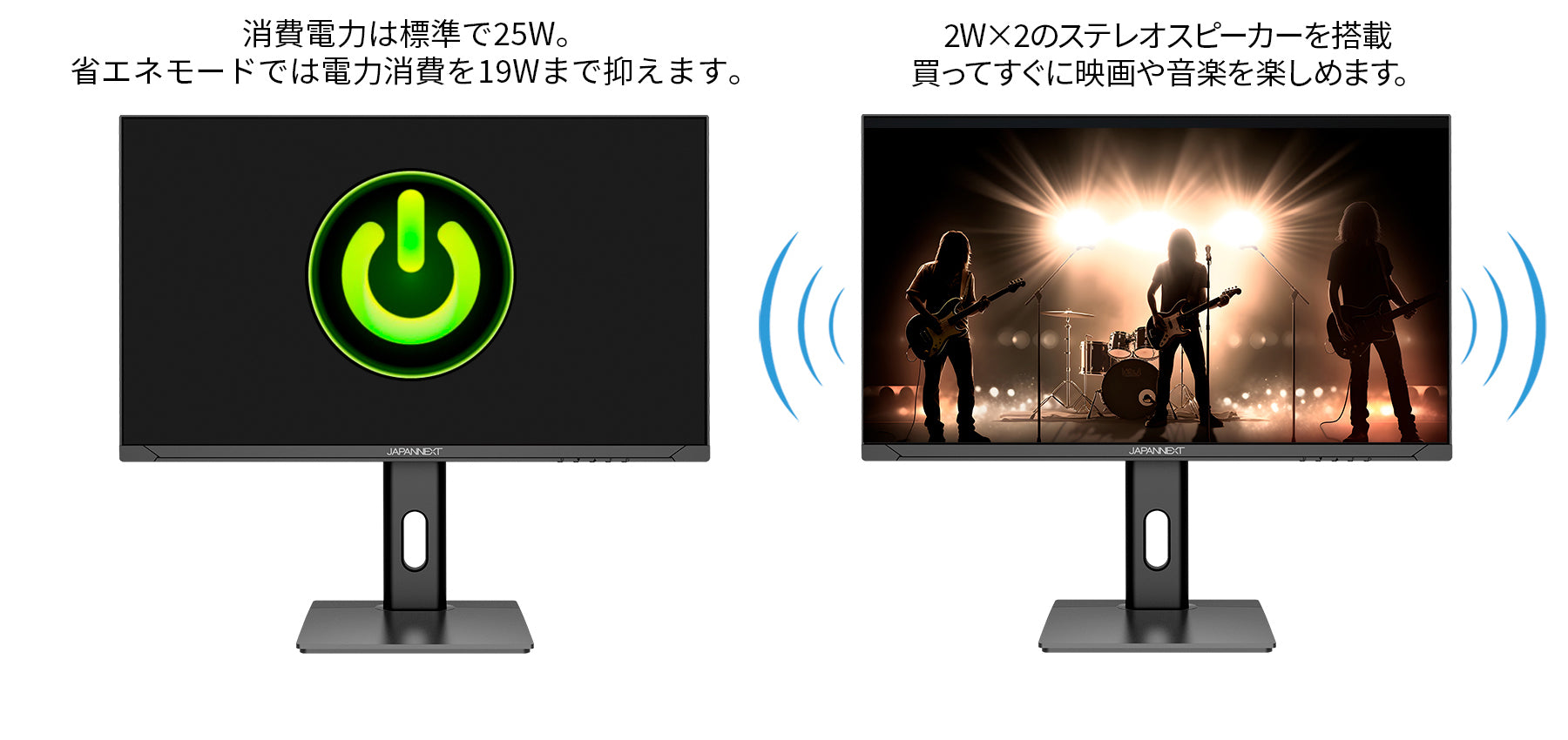 上下左右178°の視野角度を持つIPSパネルは標準的なTNパネルと異なり、 斜めから見ても色やコントラスト変化がおきにくい鮮明な画像を映し出します。