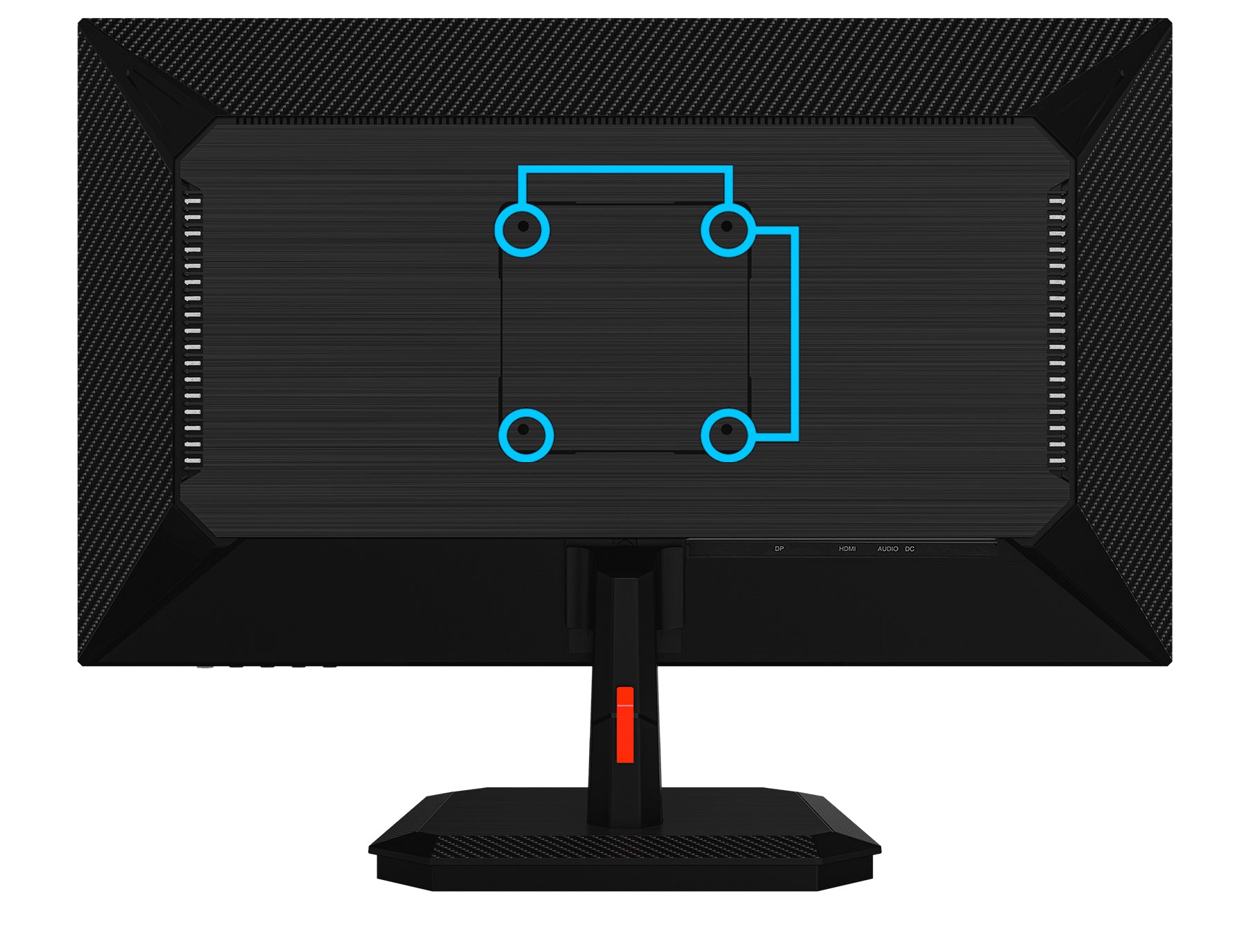 100x100mmのVESAマウントに対応、別売のモニターアームやモニタースタンドなどへの取り付けが可能です。
