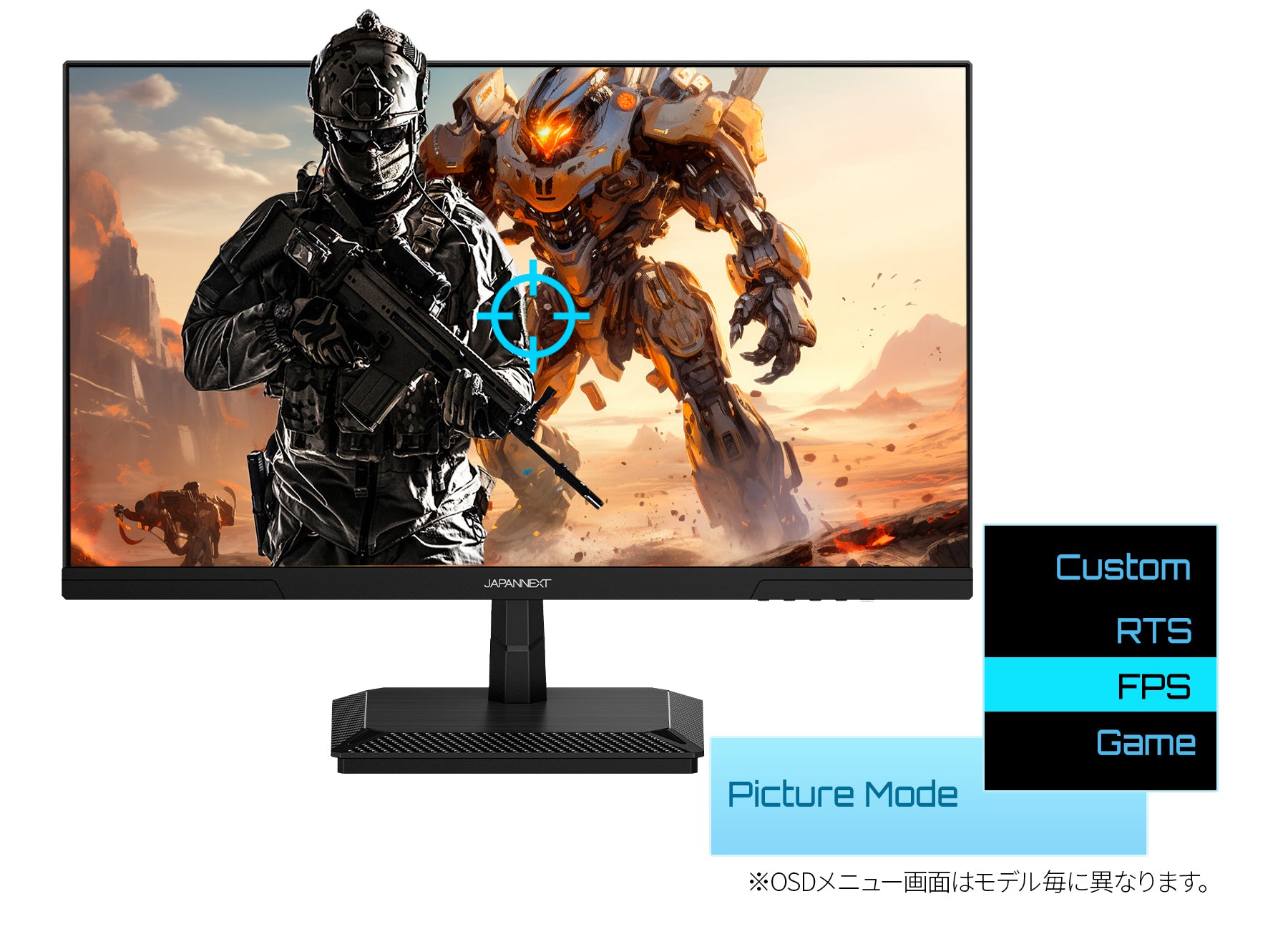 144Hzの高速リフレッシュレートと1ms(MPRT)の応答速度により、高精細で滑らかな映像表現を実現し、FPSなどの動きの速いゲームでも快適なプレイが可能です。*MPRT 1msはリフレッシュレート100Hz以上で有効。
