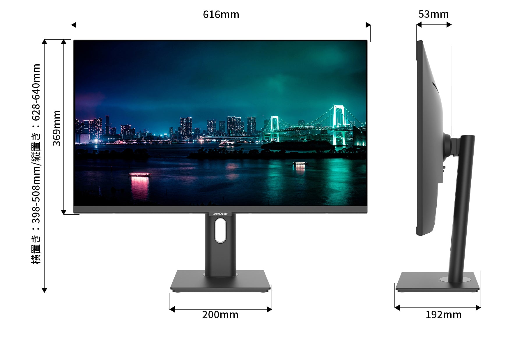 27インチのIPSパネルを搭載し、WQHD(2560x1440)解像度に対応した液晶モニターです。フルHD(1920x1080)より+78%も高精細でデスクワーク使用時には画面を広く、また写真や動画視聴の際はさらに美しく表示します。