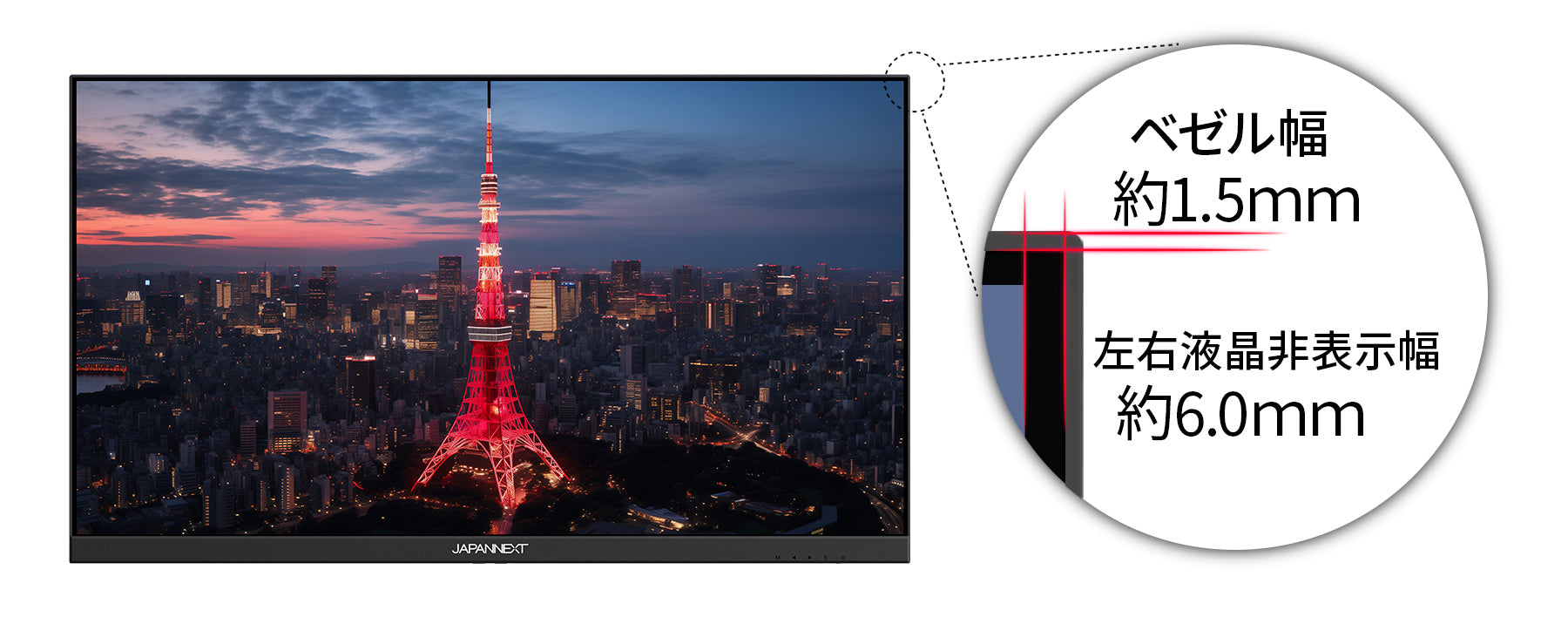 上下左右178°の視野角度を持つIPSパネルは標準的なTNパネルと異なり、 斜めから見ても色やコントラスト変化がおきにくい鮮明な画像を映し出します。
