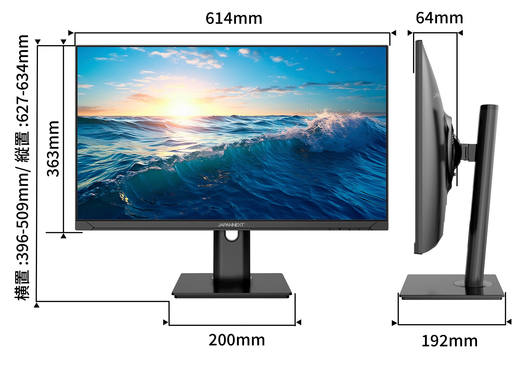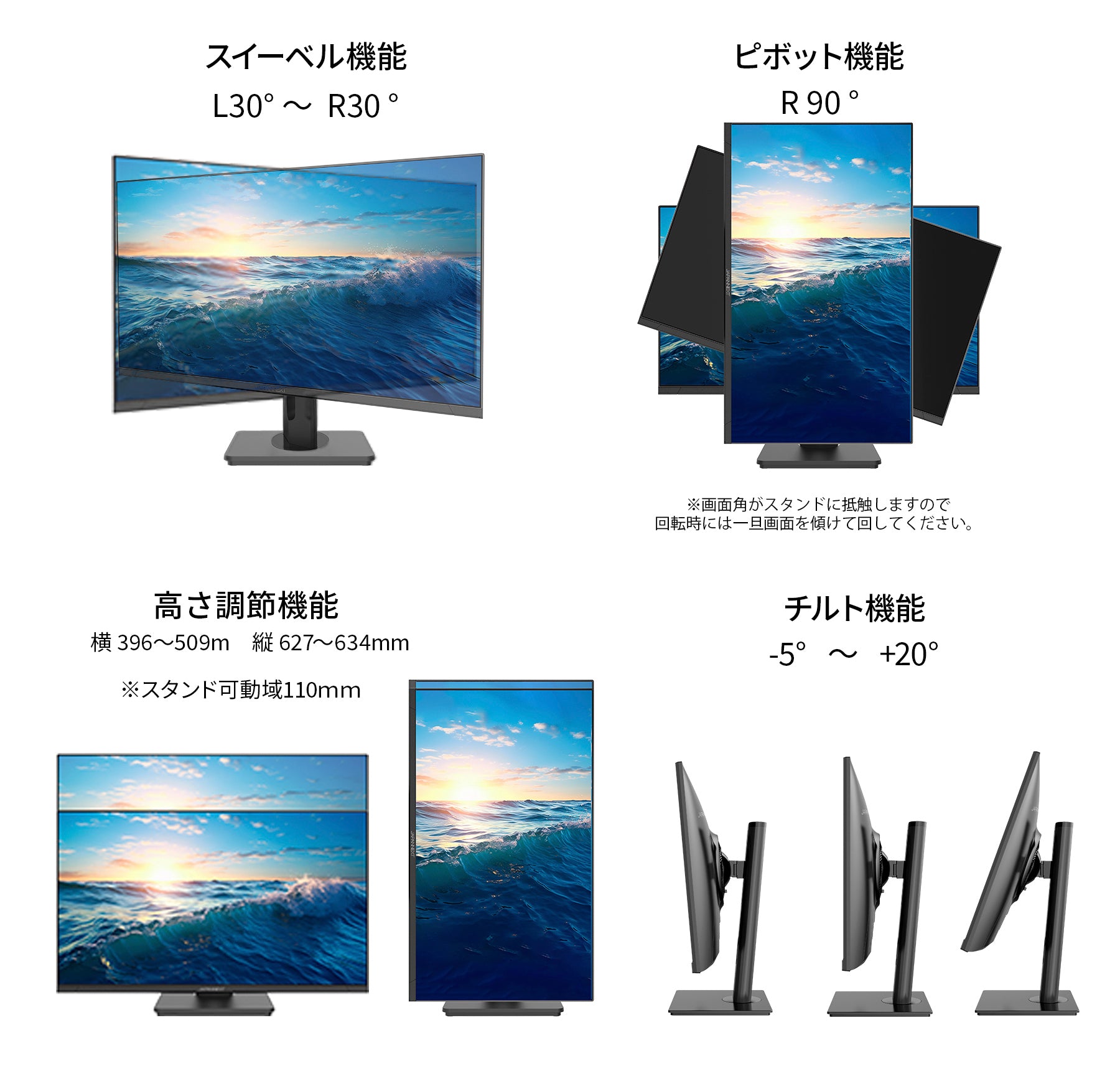 27インチのIPSパネルを搭載、使いやすいフルHD(1920x1080)解像度に対応した液晶モニターです。