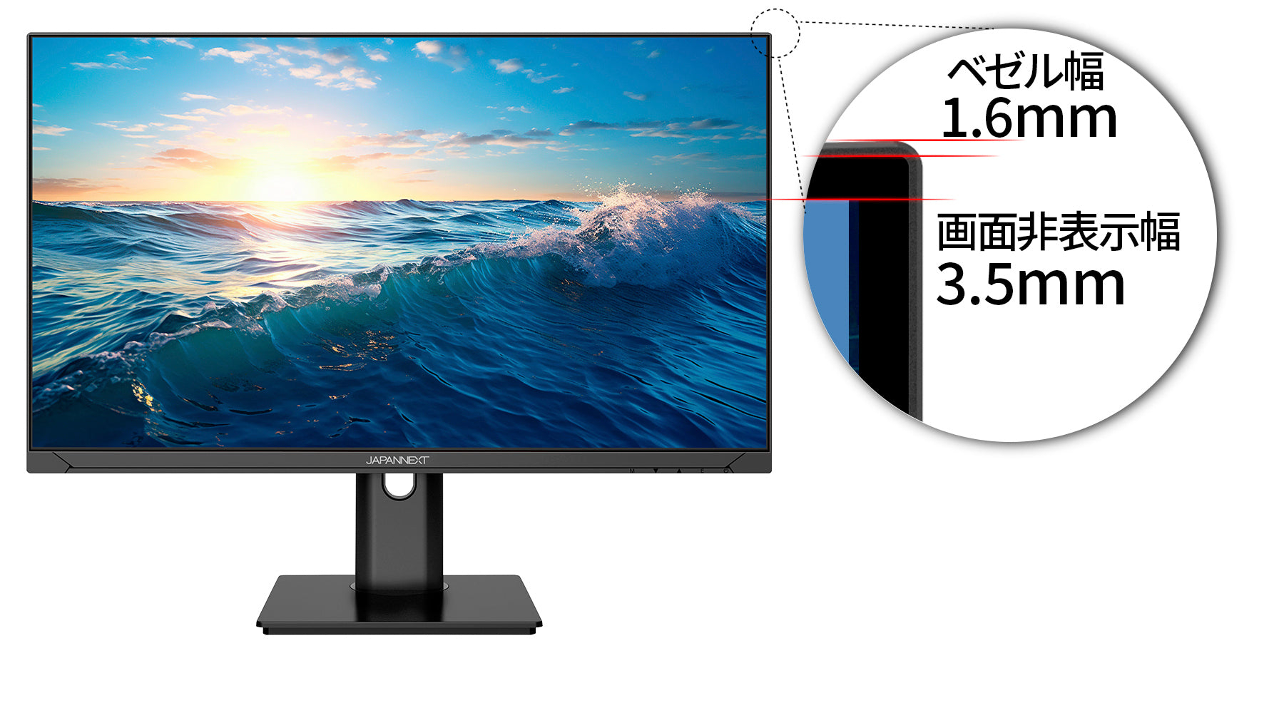 上下左右178°の視野角度を持つIPSパネルは標準的なTNパネルと異なり、 斜めから見ても色やコントラスト変化がおきにくい鮮明な画像を映し出します。
