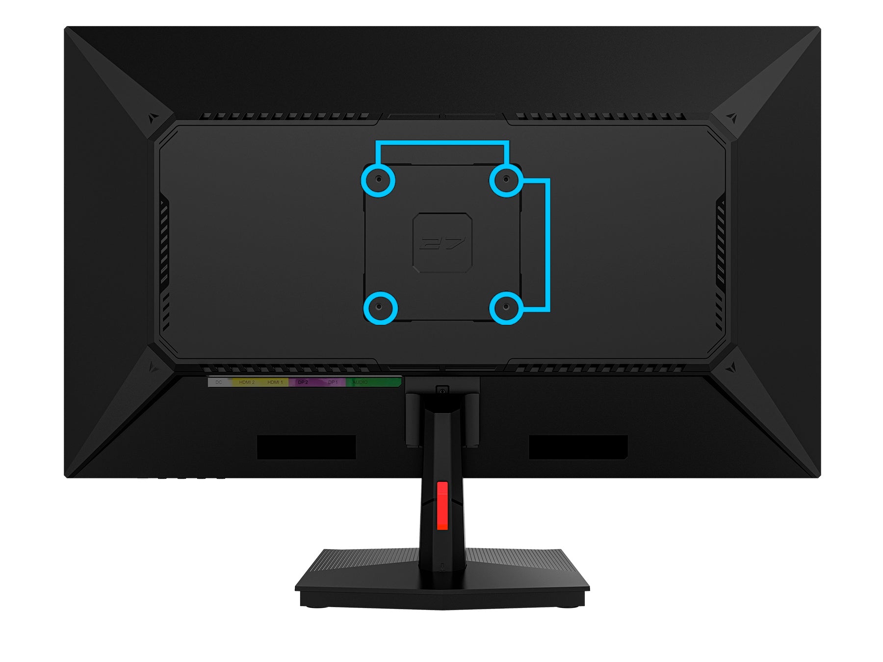100x100mmのVESAマウントに対応、モニターアームやモニタースタンドなどへの取り付けが可能です。