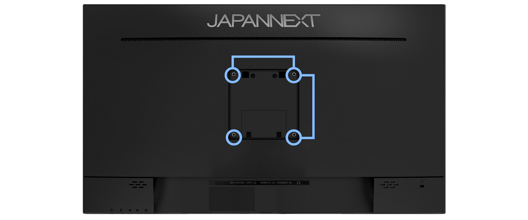 100x100mmのVESAマウントに対応しますので、別売りのモニターアームなどに使用が可能です。