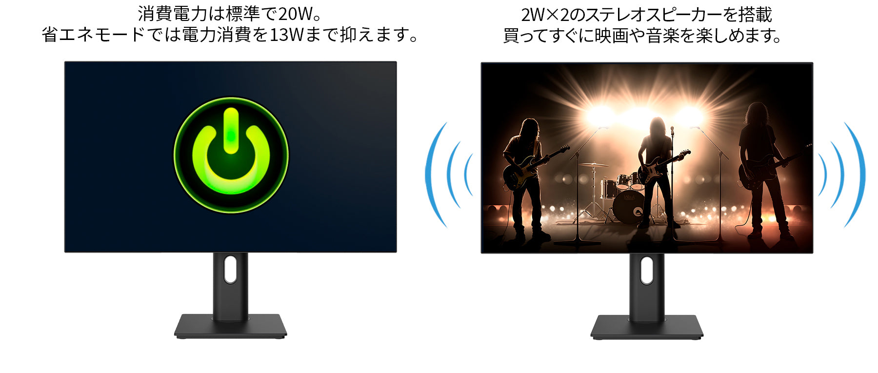 長時間使用時に眼に優しいフリッカーフリー(ちらつき軽減)、ブルーライト軽減モードを搭載します。