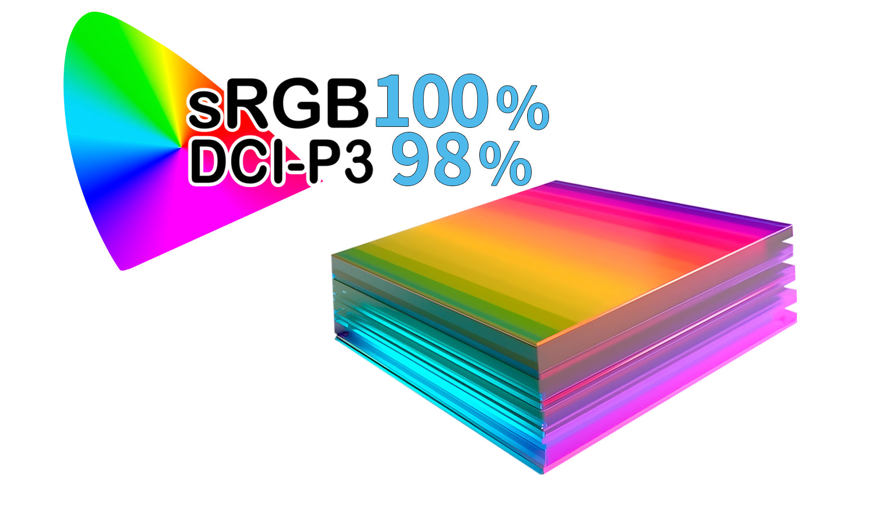 sRGB:100%、DCI-P3:98%、輝度400cd/m2の高性能パネルが画像を鮮やかな色彩でくっきりと表示します