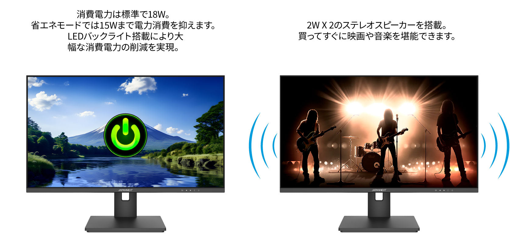 上下左右178°の視野角度を持つIPSパネルは標準的なTNパネルと異なり、 斜めから見ても色やコントラスト変化がおきにくい鮮明な画像を映し出します。