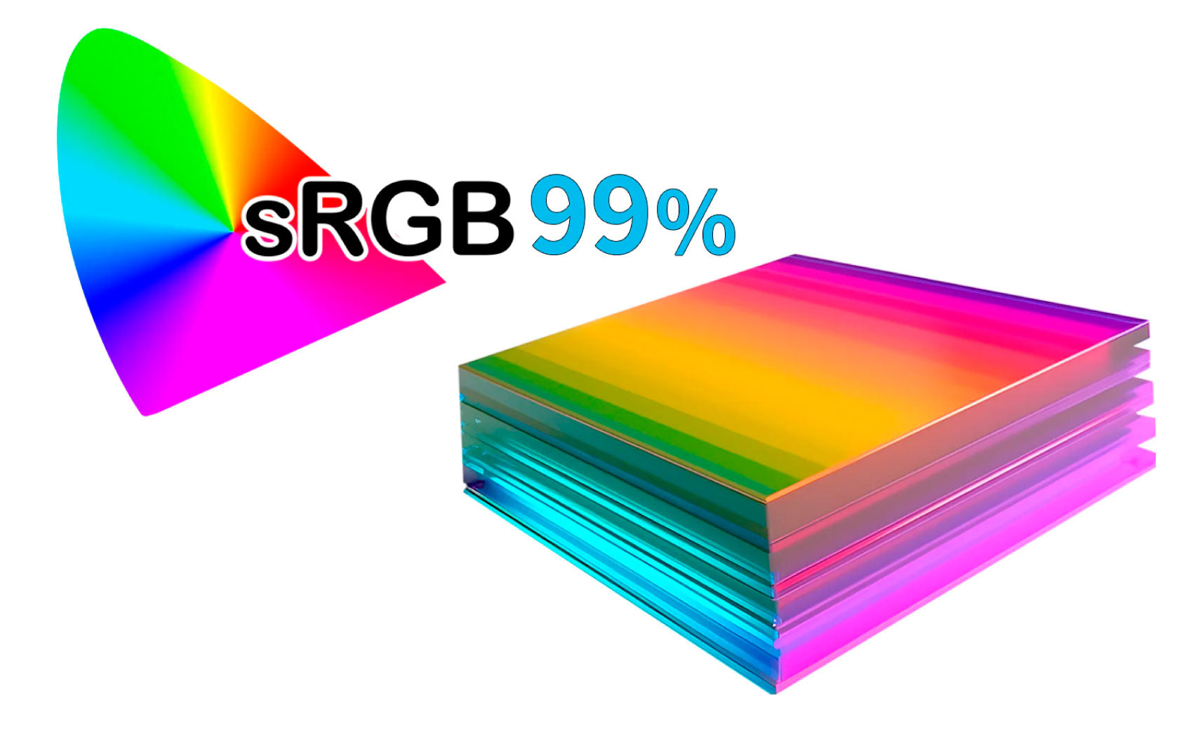 sRGB:99%の液晶パネルが色彩を鮮やかに表示します。色の正確性を求める専門用途にも最適です。