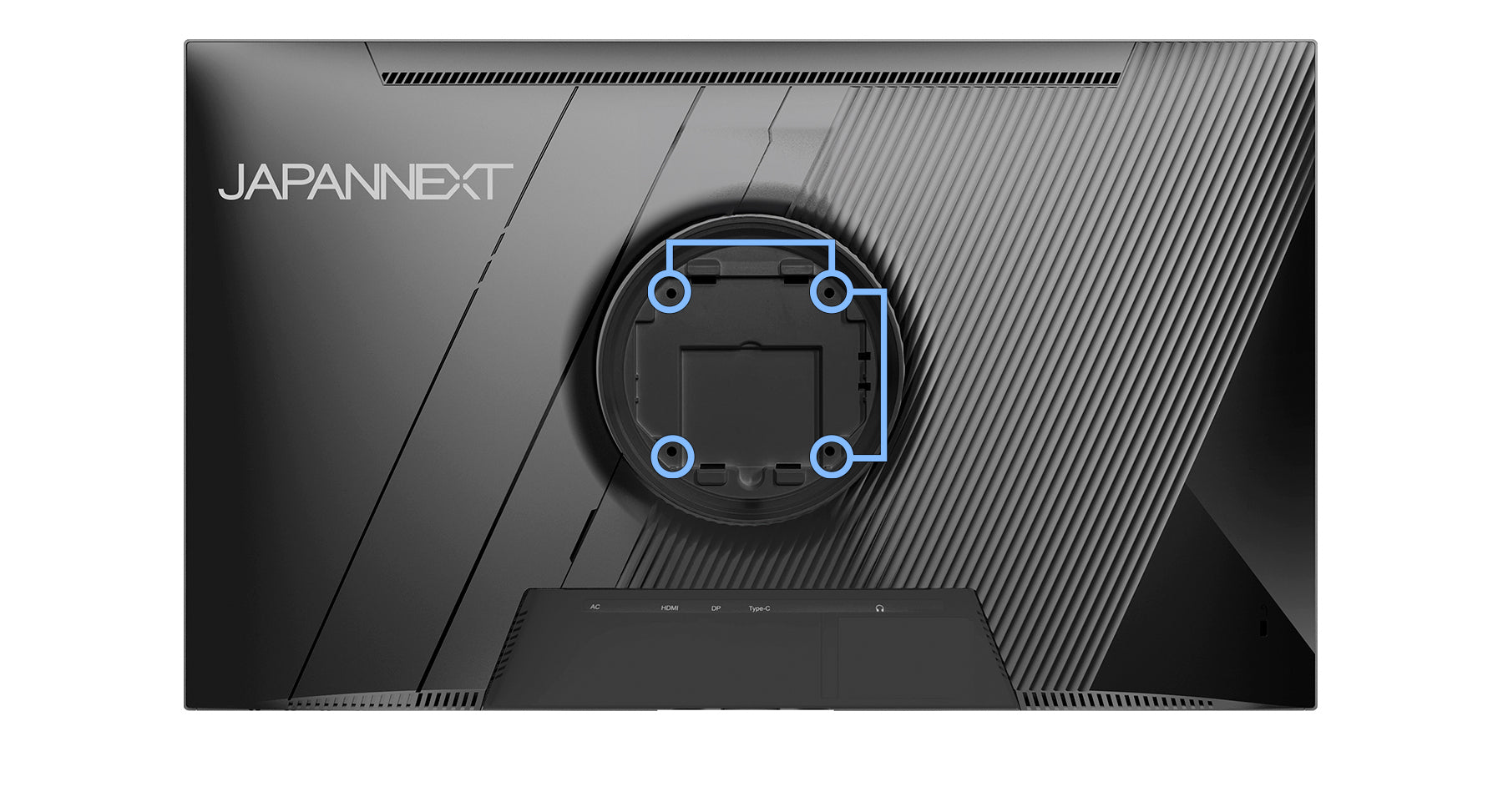 75x75mmのVESAマウントに対応しますので、別売りのモニターアームなどに使用が可能です。