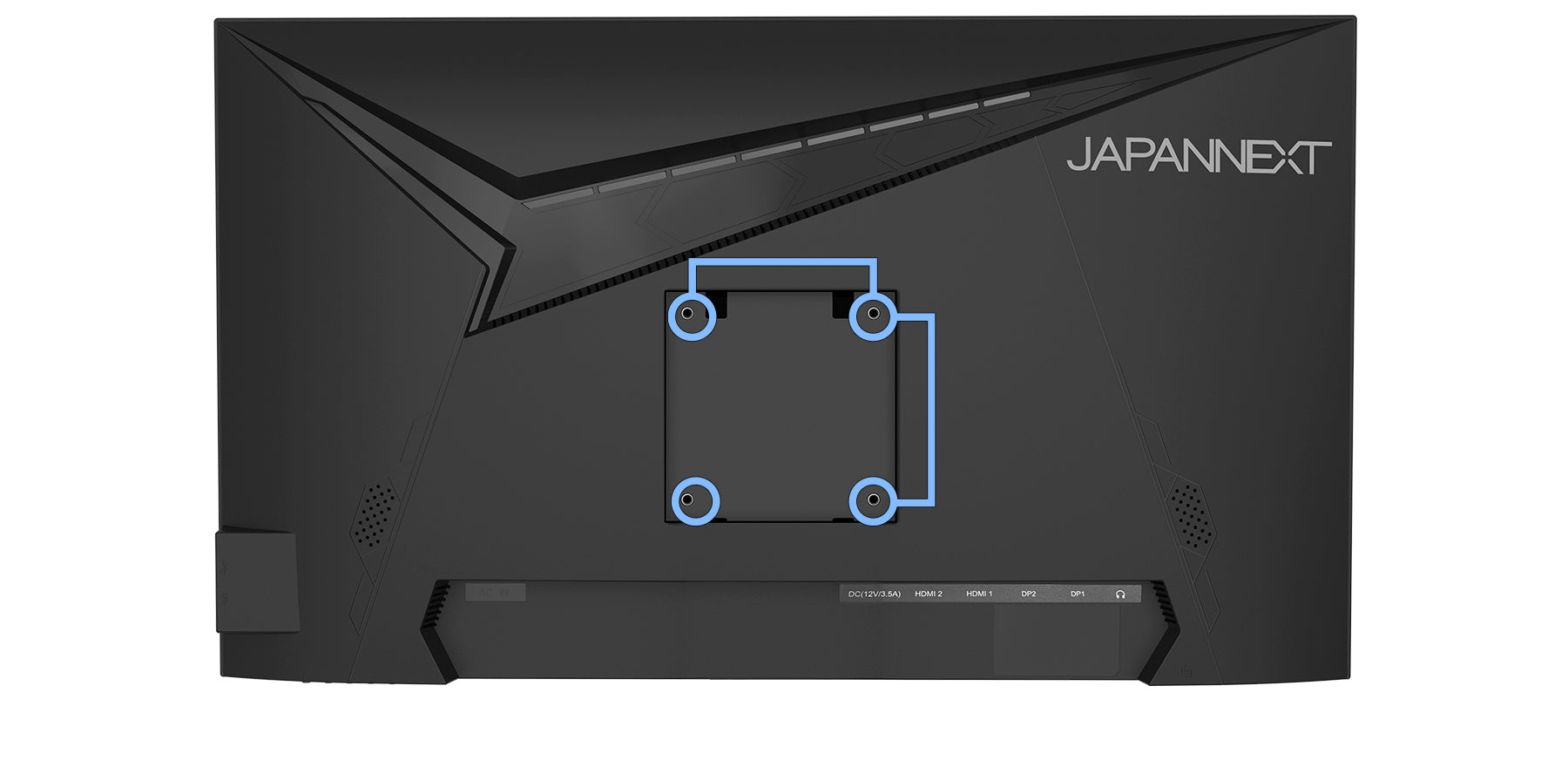 100x100mmのVESAマウントに対応しますので、別売りのモニターアームなどに使用が可能です。