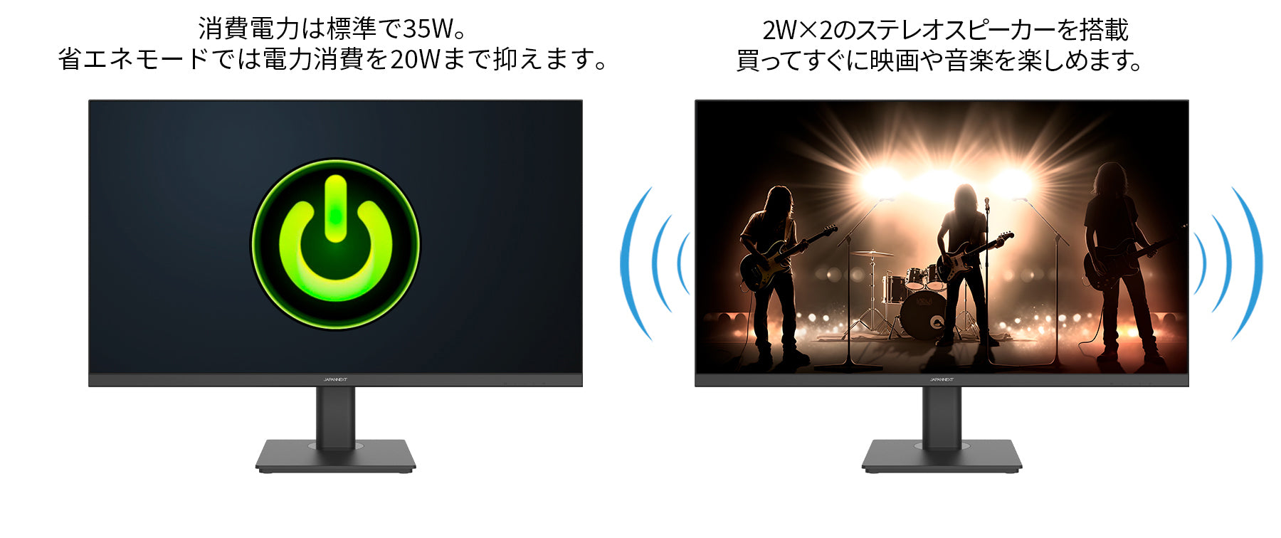 上下左右178°の視野角度を持つIPSパネルは標準的なTNパネルと異なり、 斜めから見ても色やコントラスト変化がおきにくい鮮明な画像を映し出します。