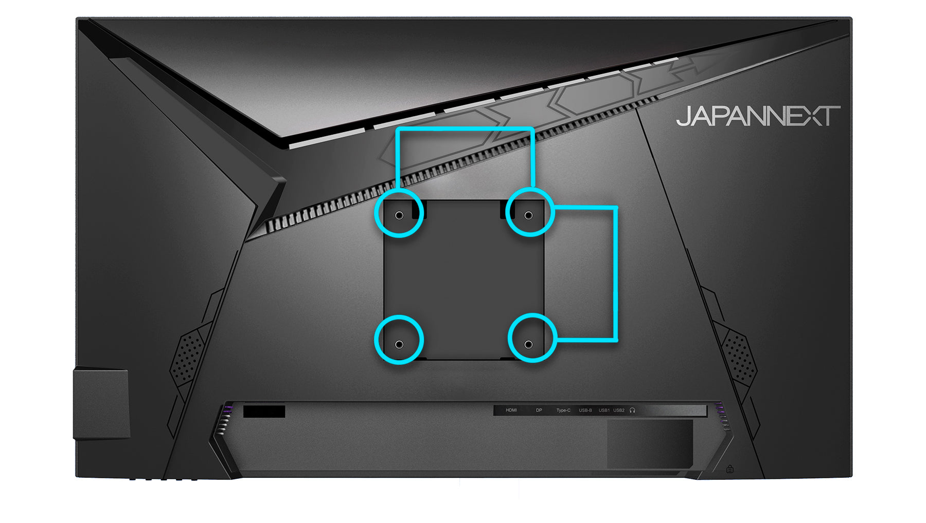 100x100mmのVESAマウントに対応しますので、別売りのモニターアームなどに使用が可能です。