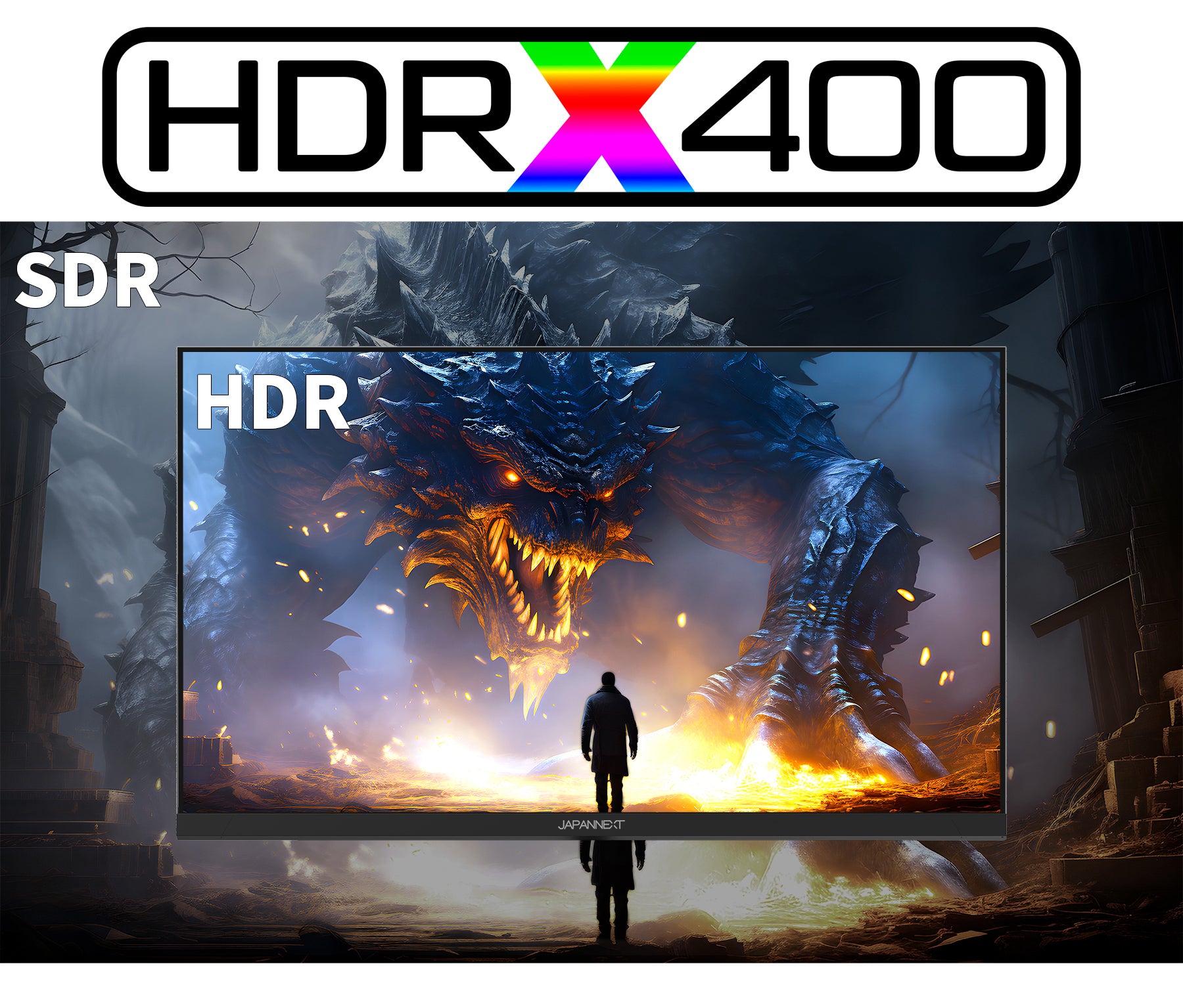 HDR対応のブルーレイディスクやビデオ・オン・デマンド、ゲームなどの表示が可能。現実に近い美しい映像をお楽しみください。HDCP2.2対応で4K配信動画もお楽しみ頂けます。また、最大輝度400cd/m2、1000:1の高コントラスト比でHDR400相当の性能を持ちます。