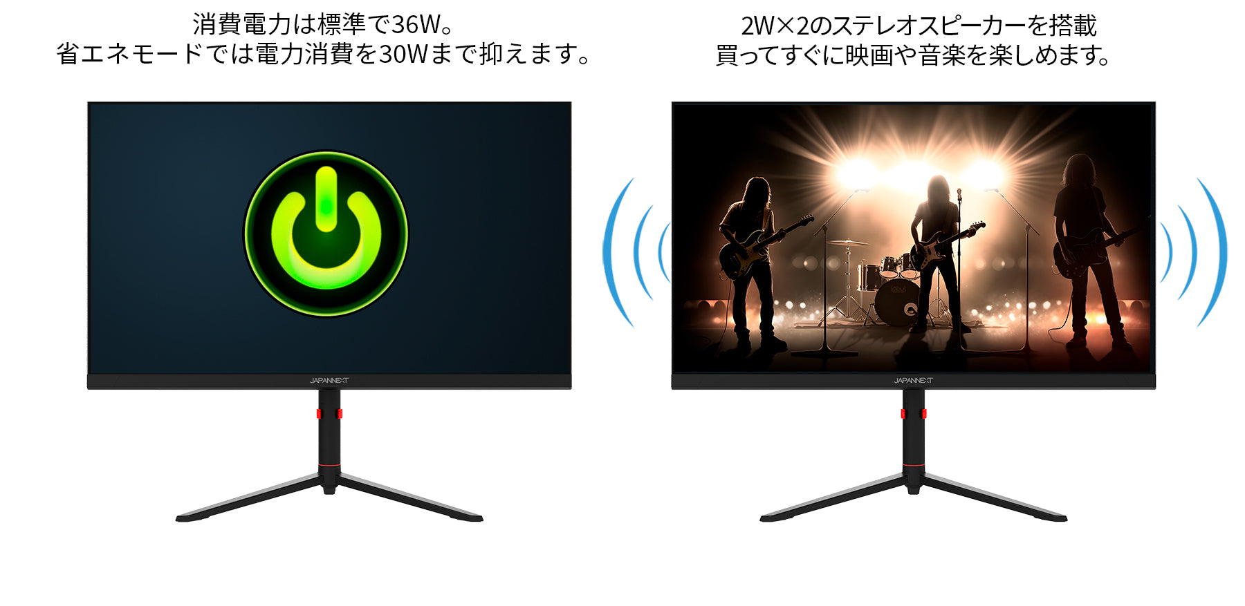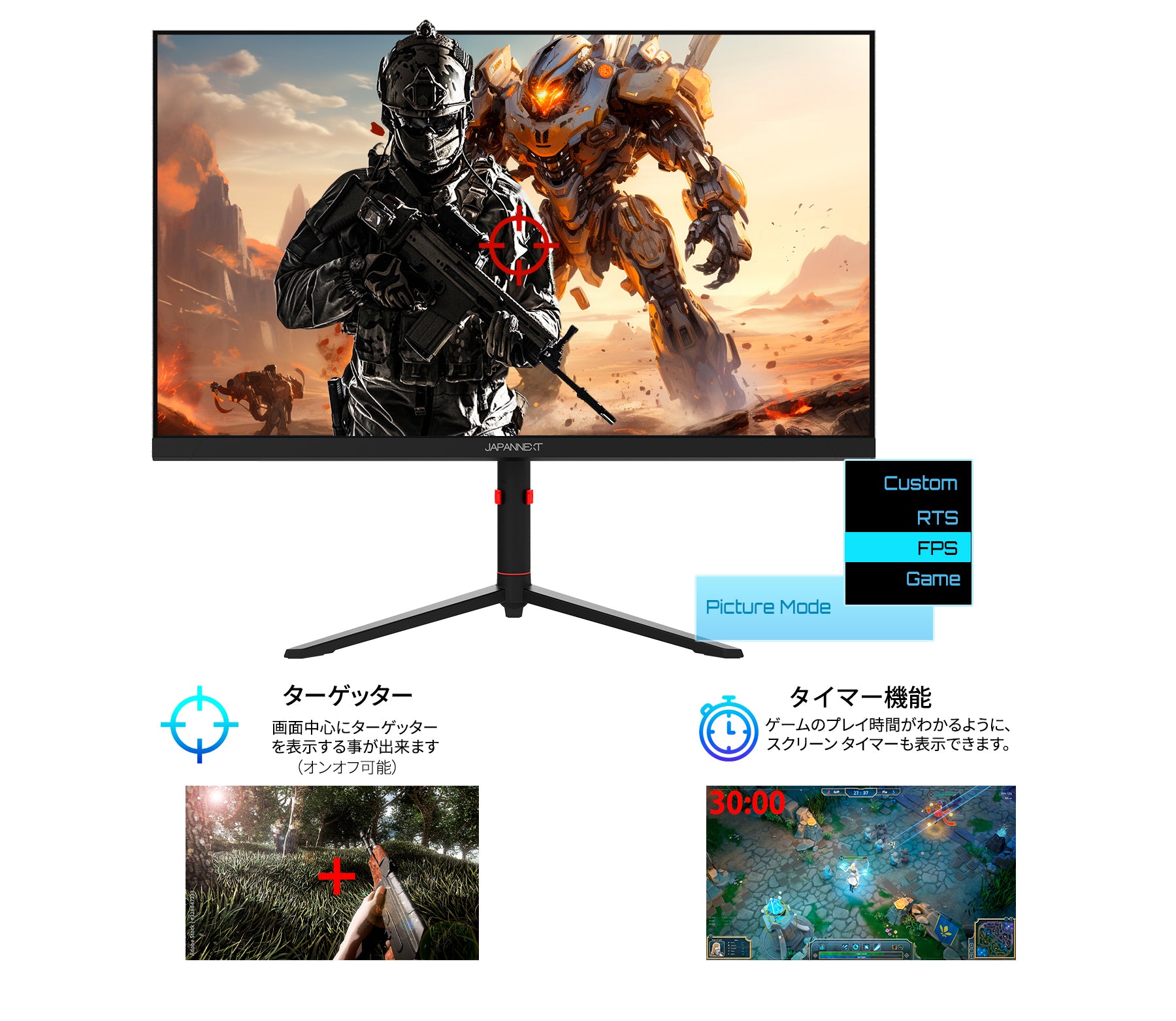 モニターのリフレッシュレートをコンソールのグラフィック出力に合わせてリアルタイムで同期します。 これによりティアリング(ちらつき)やコマ落ちを軽減することが可能です。 *VRR対応のゲームタイトルが必要です。コンソール本体が最新版になっている事をご確認ください。 ※OSDメニューから、AdaptiveSync/VRR あるいは FreeSync をオンにしてご利用ください。