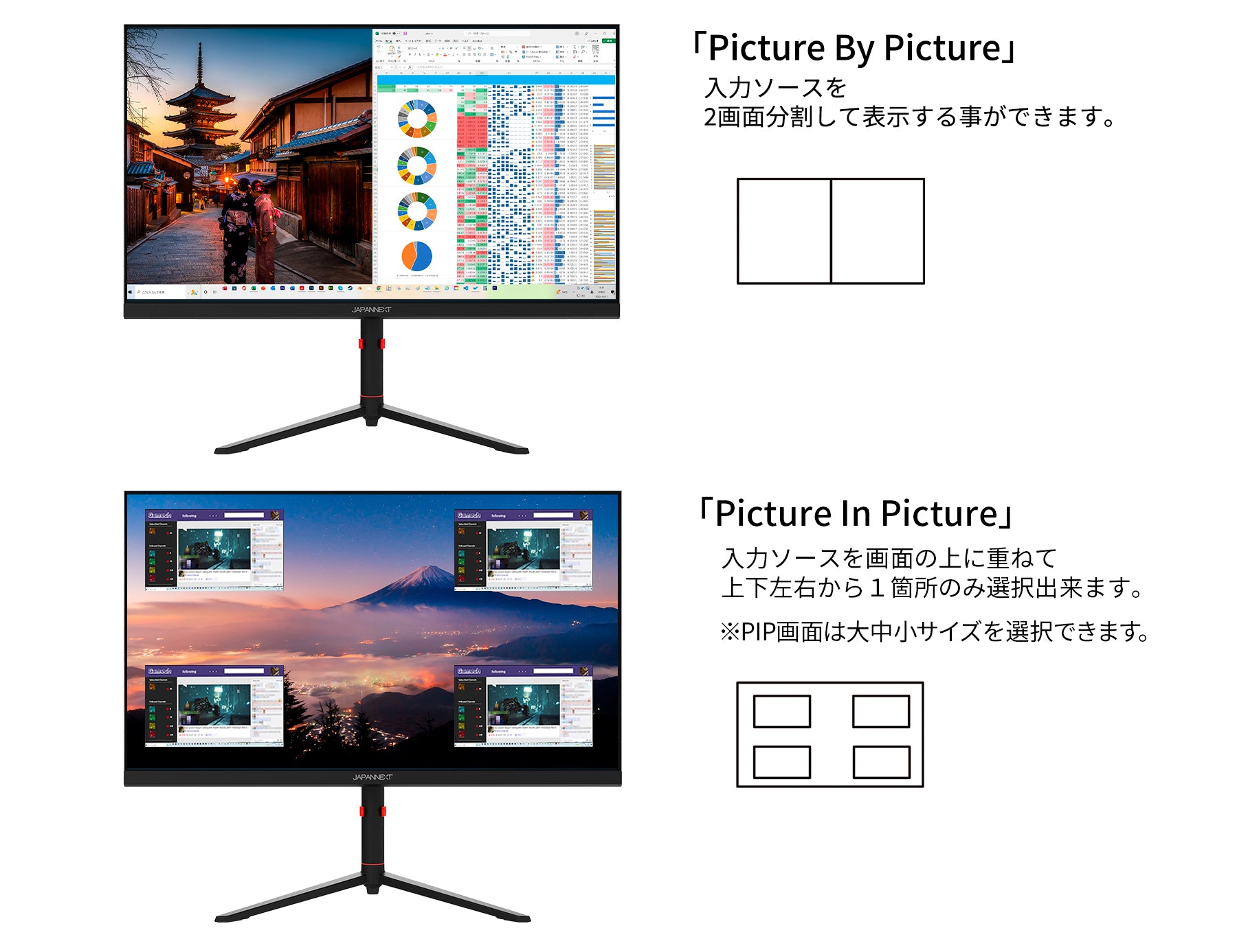 複数の入力を同時に表示するPBP/PIP機能搭載
