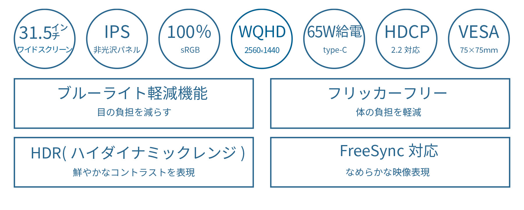 31.5インチのIPSパネルを搭載し、WQHD(2560x1440)解像度に対応した液晶モニターです。