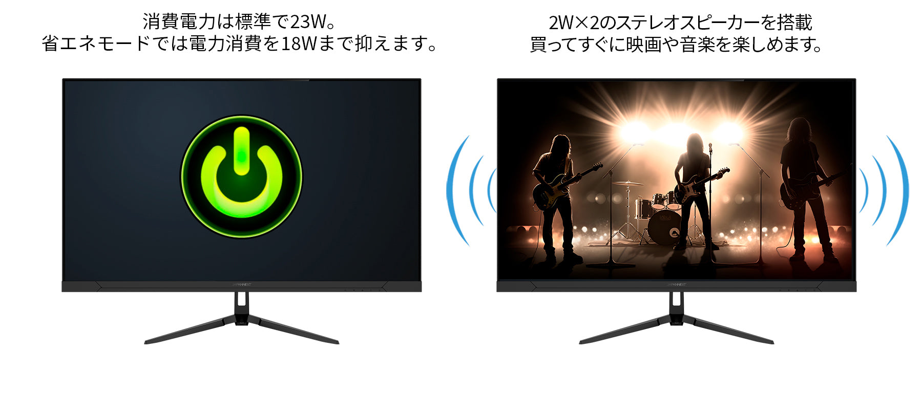 長時間使用時に眼に優しいフリッカーフリー(ちらつき軽減)、ブルーライト軽減モードを搭載します。