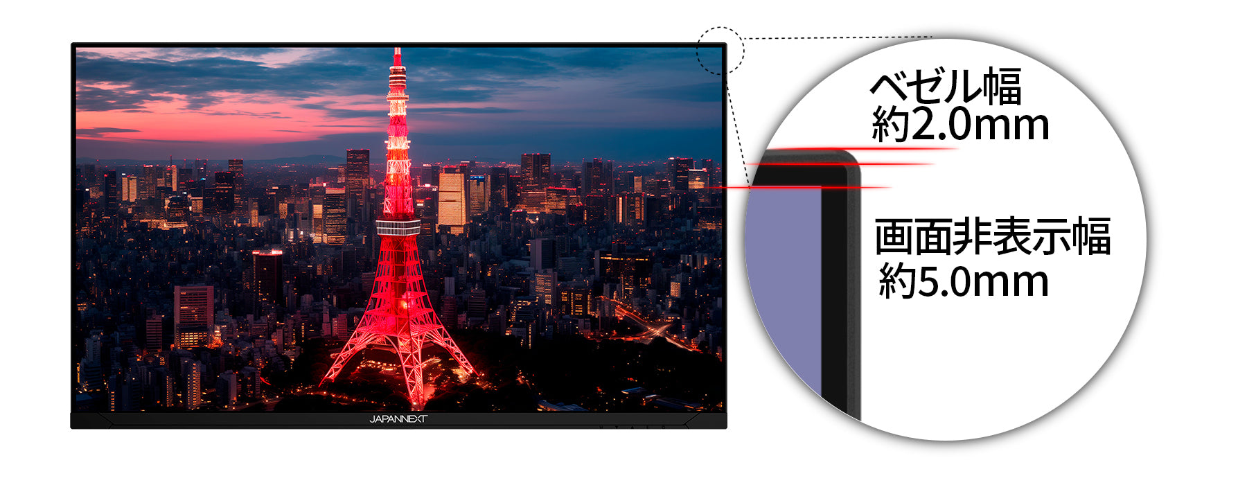 上下左右178°の視野角度を持つIPSパネルは標準的なTNパネルと異なり、 斜めから見ても色やコントラスト変化がおきにくい鮮明な画像を映し出します。