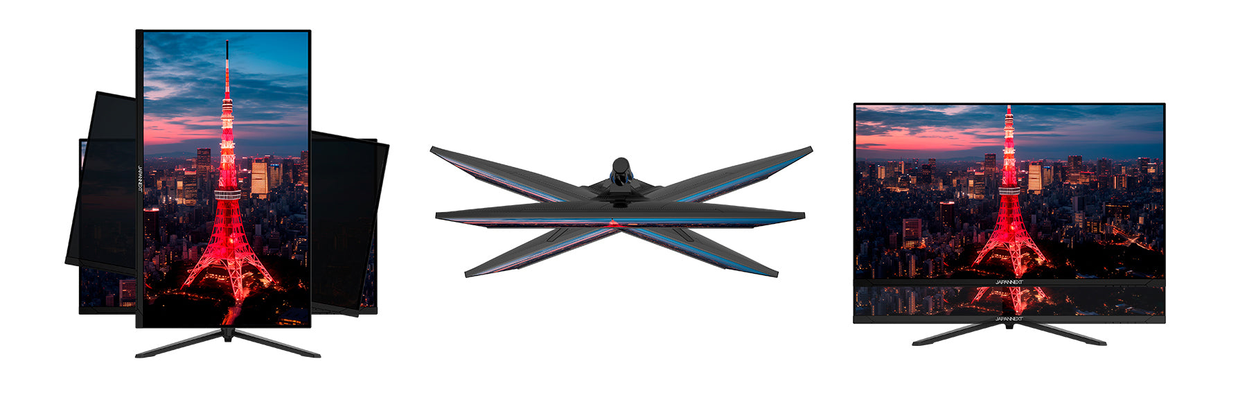 高さ調整が可能な、昇降式スタンドを採用。最大130mm(横置時)の範囲でお好みの高さにモニターの高さを調整出来ます。さらにピボット機能を搭載で90度回転させて縦での使用も可能です。