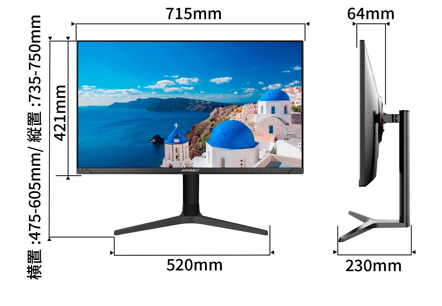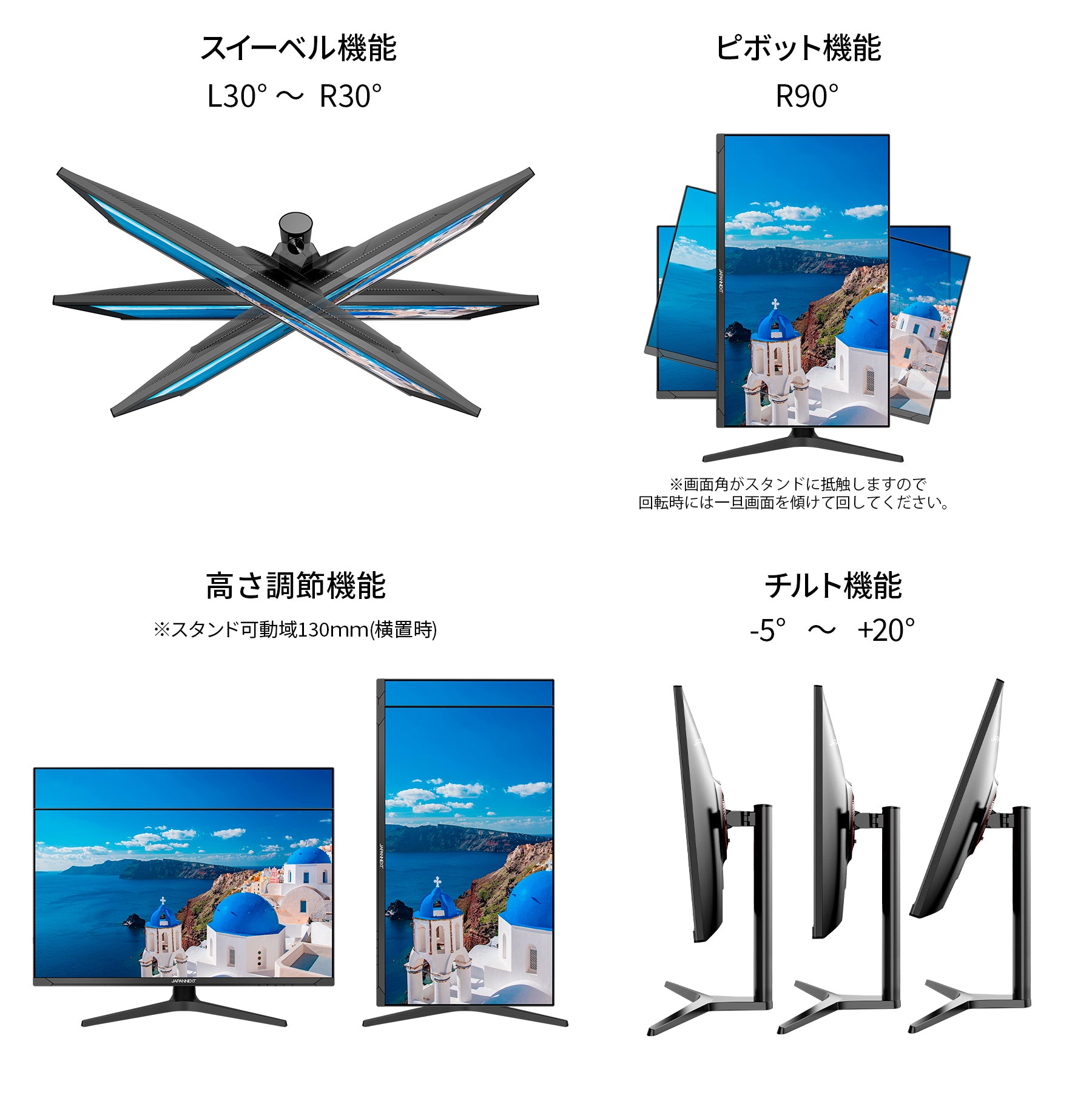 最大130mm(横置時)の範囲で高さ調整を行うことが可能な便利な昇降式スタンドを搭載。また、90度右に回転させての縦での使用も可能です。