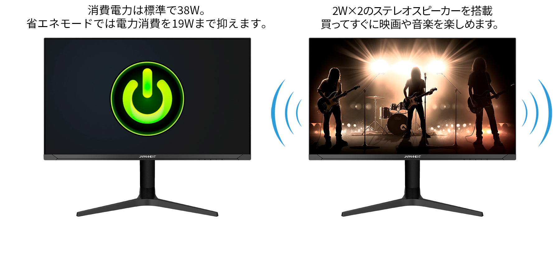 上下左右178°の視野角度を持つIPSパネルは標準的なTNパネルと異なり、 斜めから見ても色やコントラスト変化がおきにくい鮮明な画像を映し出します。