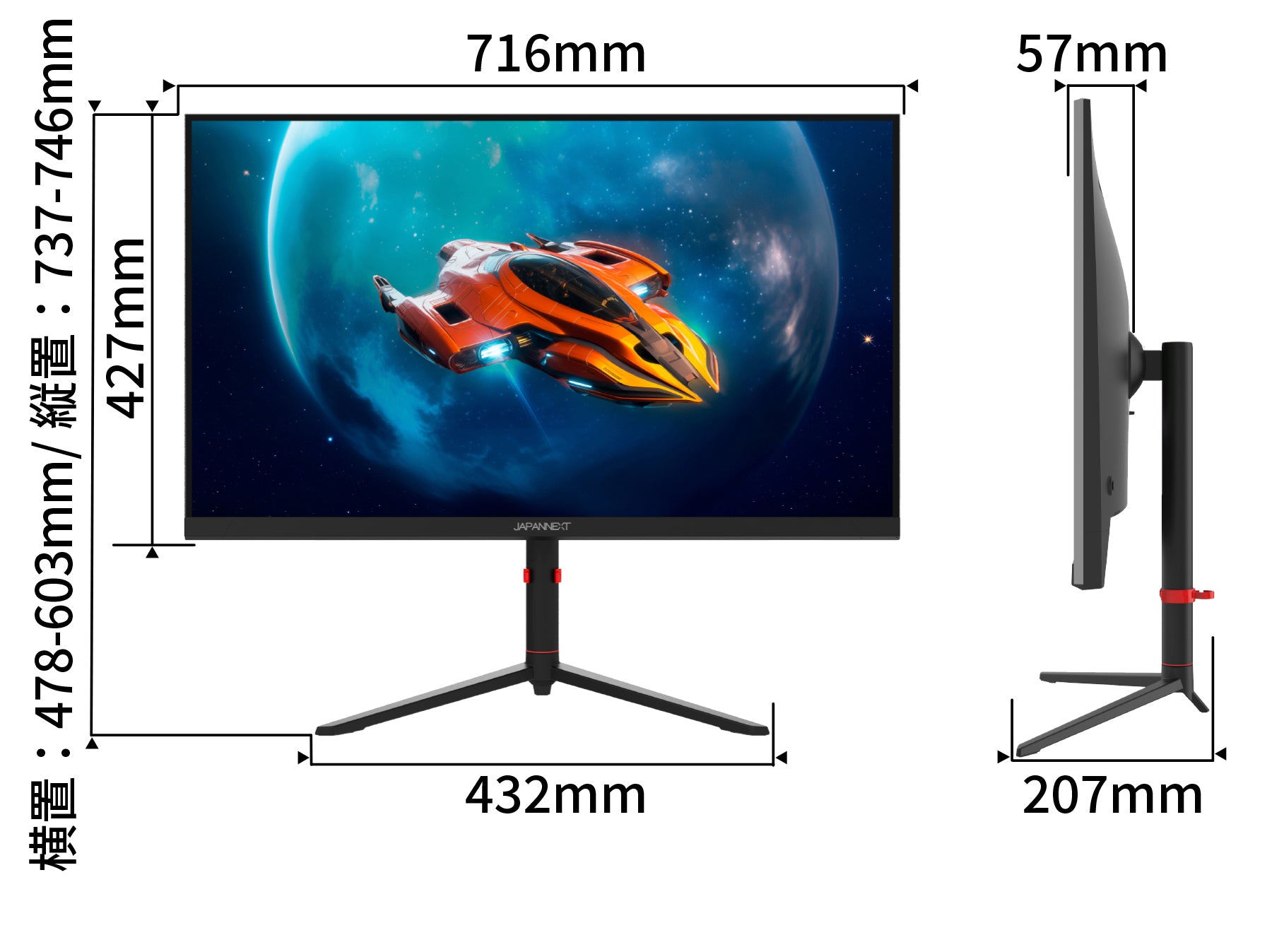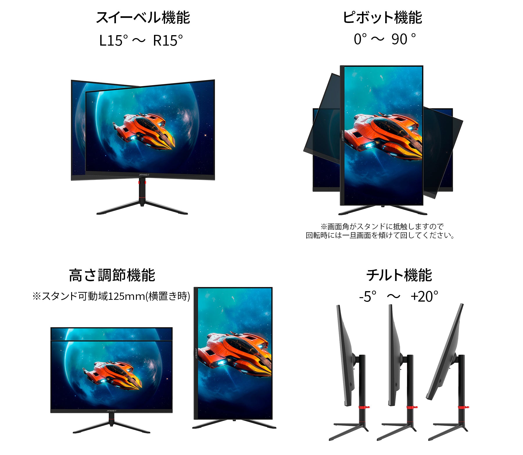 165Hzリフレッシュレート 昇降式多機能スタンド