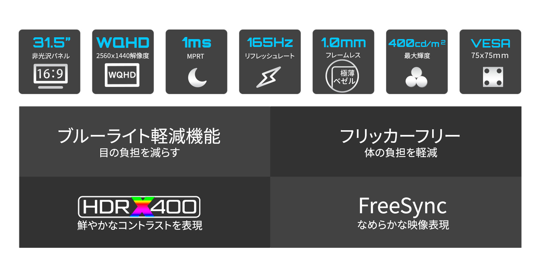 31.5” IPSパネル搭載 WQHDゲーミングモニター