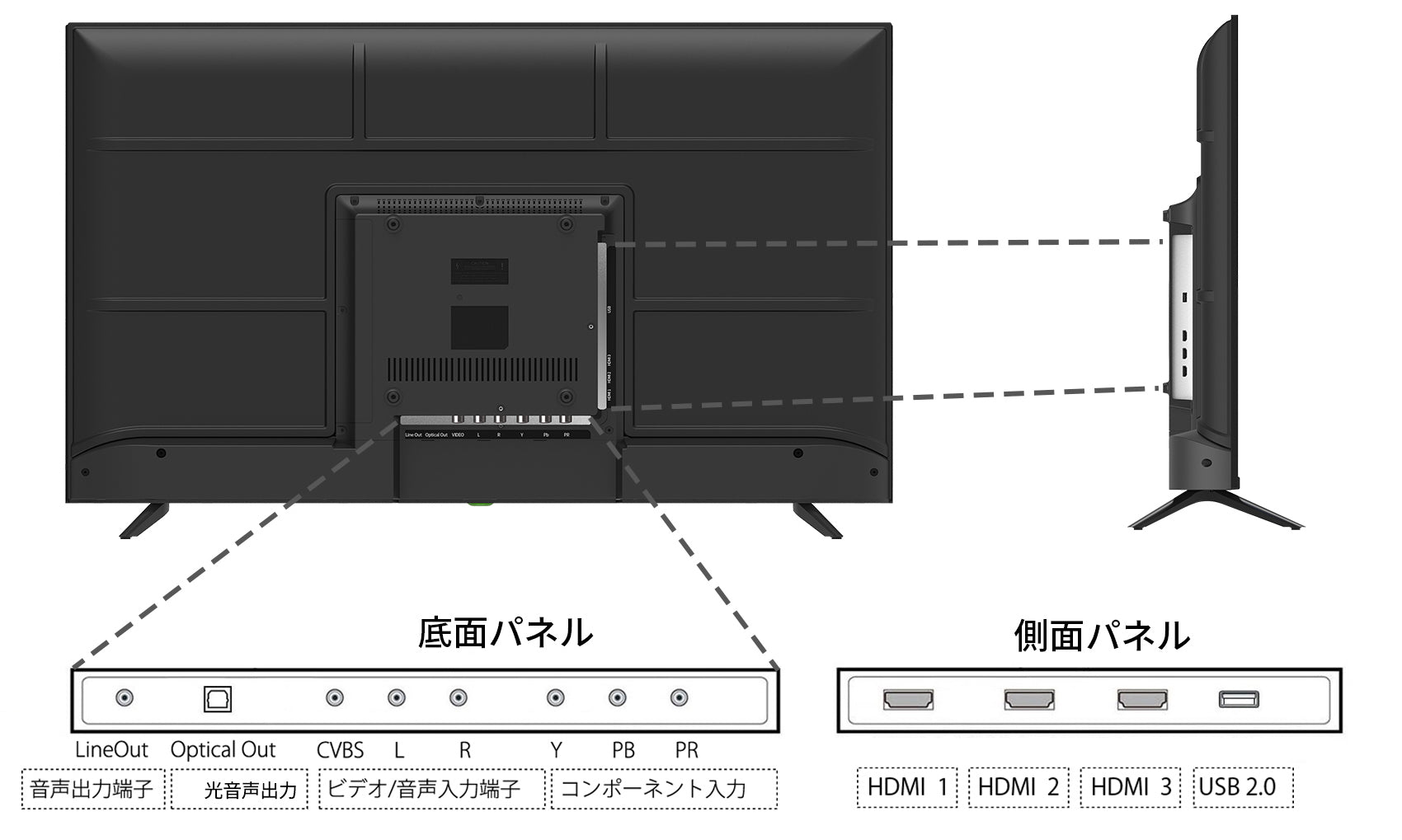 【HDMI CEC / ARC 機能】【光音声出力、ビデオ入出力、コンポーネント入力】は、